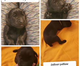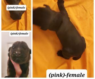 Our puppies are black. Colors will vary depending on the parent dogs.