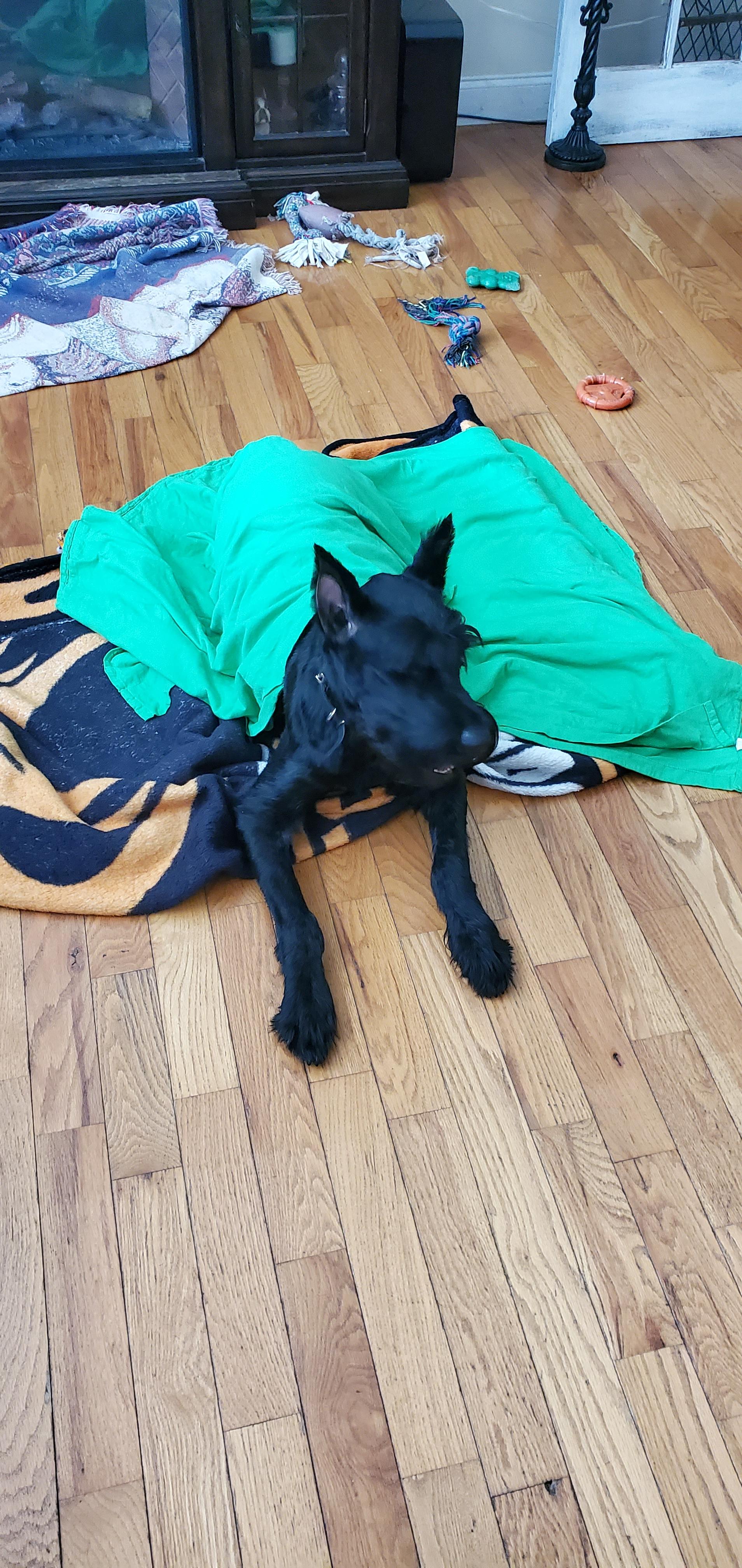 OG is a female Giant Schnauzer. Carefully selected as a great representative of her breed, Misti decided to make her part of their program. Misti has passed Good Dog’s screening process, which involved a review of their breeding practices, environment, and the mental and physical health of their dogs.