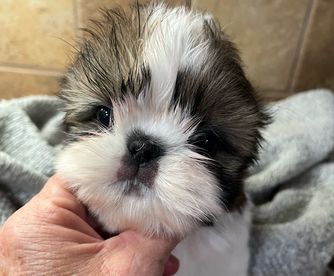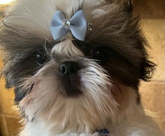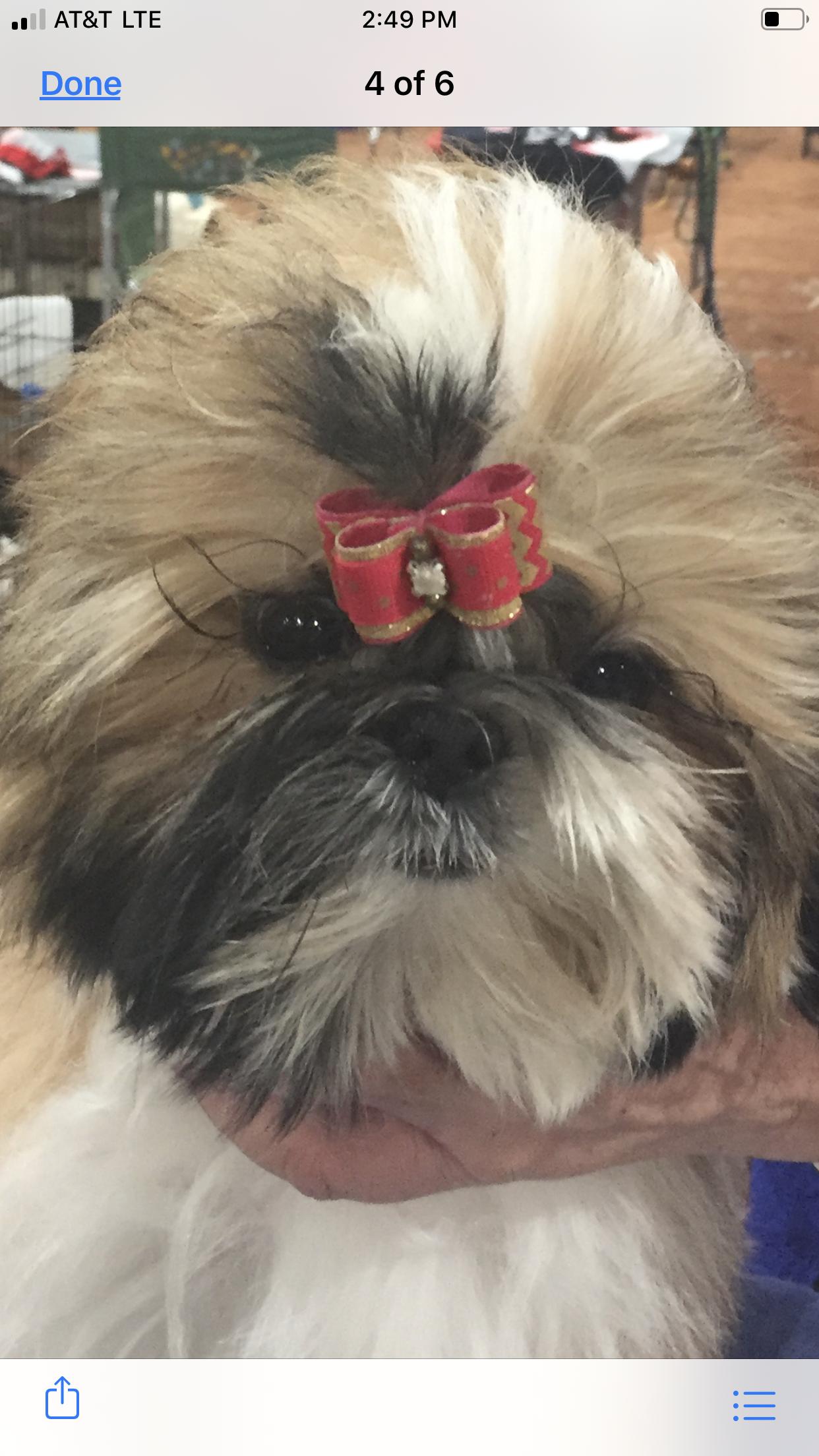 Tatum is a beatiful Red and White Shih Tzu . Both of her parents are AKC Champions . Tatum has a beautiful thick red and white coat, and a wonderful conformation. She is a very sweet and gentle Shih tub who loves to cuddle and be petted, She has a thing for milk bones, and just about any treats. She gets along with all animals and people.