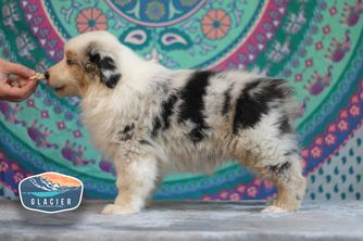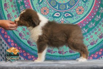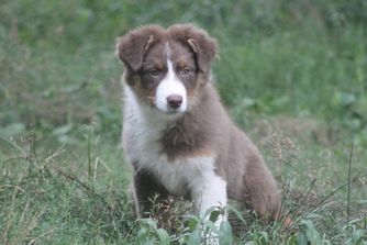 Our Australian Shepherd puppies include red merle, blue merle, black tri-color, and red tri-color. American Staffordshire Terrier puppies include fawn brindle, red, red sable, blue fawn, blue, blue brindle, and black. Colors will vary depending on the parent dogs.