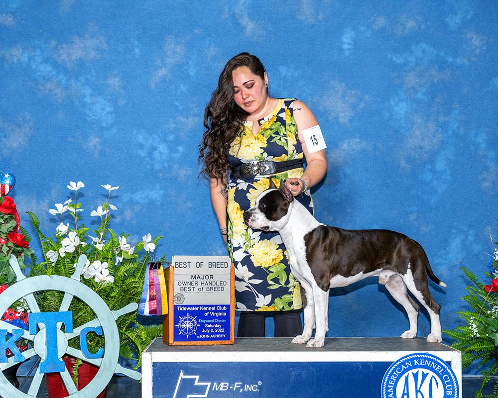 For the past decade, I have shown UKC American Pit Bull Terriers and decided to transition to a breed that can show both AKC & UKC. With lots of patience, I was finally able to obtain my first Amstaffs in 2017 to begin my new adventure in AKC as well as remaining faithful to where I got my start, in UKC.