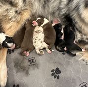 Our puppies include red merle, blue merle, black tri-color, and red tri-color. Colors will vary depending on the parent dogs.