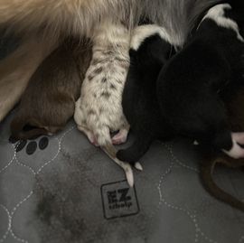 🐾✨ They’re here! Skye and Ponyboy’s beautiful puppies made their big debut, and our hearts are already overflowing. 💕 More photos coming soon once everyone’s settled in. Stay tuned!