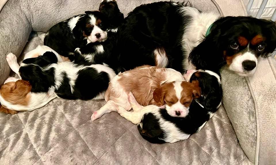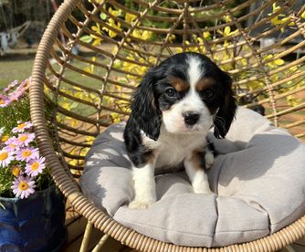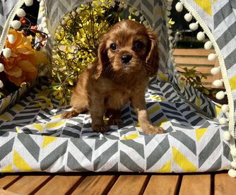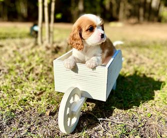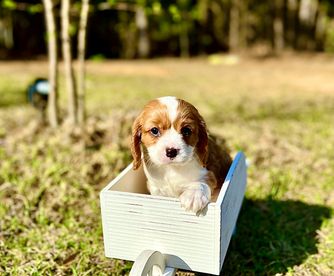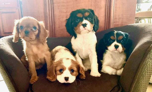 Our puppies include blenheim, ruby, black and tan, and tri-color. Colors will vary depending on the parent dogs.