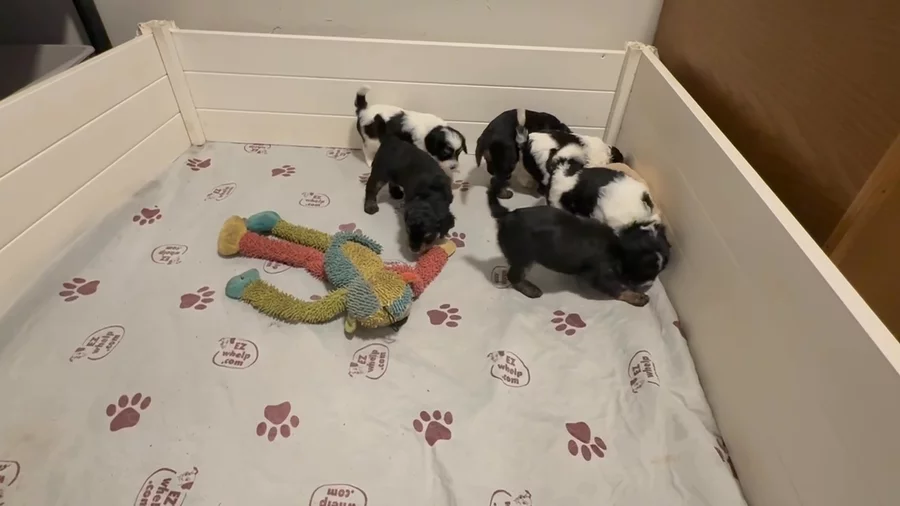 We couldn’t be happier with our Cavapoo, Joe. From the start he has been so easy-going with our kids and a wonderful addition to our family. Courtney did an amazing job! Joe came to us already crate trained, and he quickly started peeing and pooing outside with hardly any accidents. Courtney’s communication throughout the process was excellent, and it was clear Joe was treated with so much love and care as a puppy. We also received Joe with a microchip, all his vet paperwork, and even a blanket with his litter’s scent, which really helped him settle in. His calm, sweet temperament shows the care and attention Courtney puts into her puppies. Highly recommend!