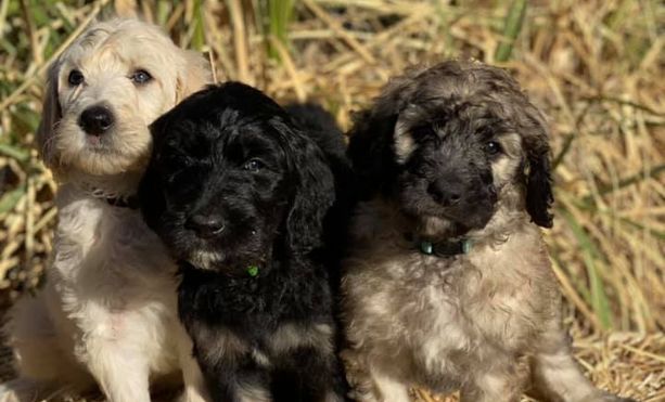 Our Cavapoo puppies include tri-color, black and white, and black and tan. Bernedoodle puppies include black and white, tri-color, phantom, blue merle, and merle. Goldendoodle puppies include cream, apricot, red, chocolate, black, phantom, merle, and parti. Colors will vary depending on the parent dogs.