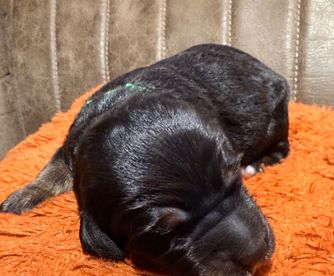 Like many breeders we fell in love with one specific dog and had to have a baby of hers. In this case her name is Hattie and she is a long retired couch potato who helps socialize all the babies.