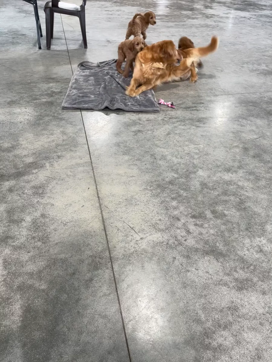 This sweet Goldendoodle mom is the picture of calm and easygoing. With her laid-back nature and friendly personality, she’s a joy to be around. She absolutely loves attention and never misses the chance to greet you with a happy wagging tail. Her gentle temperament and affectionate heart make her a wonderful mother and a beloved part of the family.