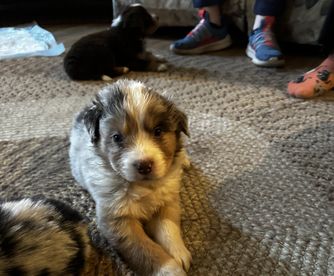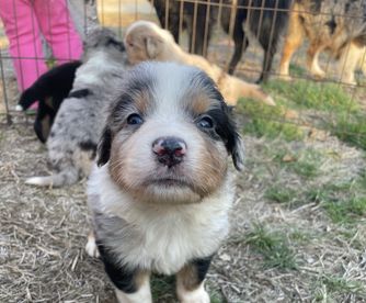Our puppies include red merle, blue merle, black tri-color, and red tri-color. Colors will vary depending on the parent dogs.