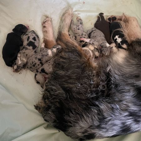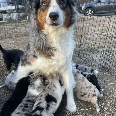As a child, my mother and grandmother bred and raised Cocker Spaniels. I loved being able to help and learn the process firsthand. I bought my first Australian Shepherd female in 2020, knowing there was the possibility of breeding her. We brought in our male and have since done all necessary testing and look forward to breeding them!
