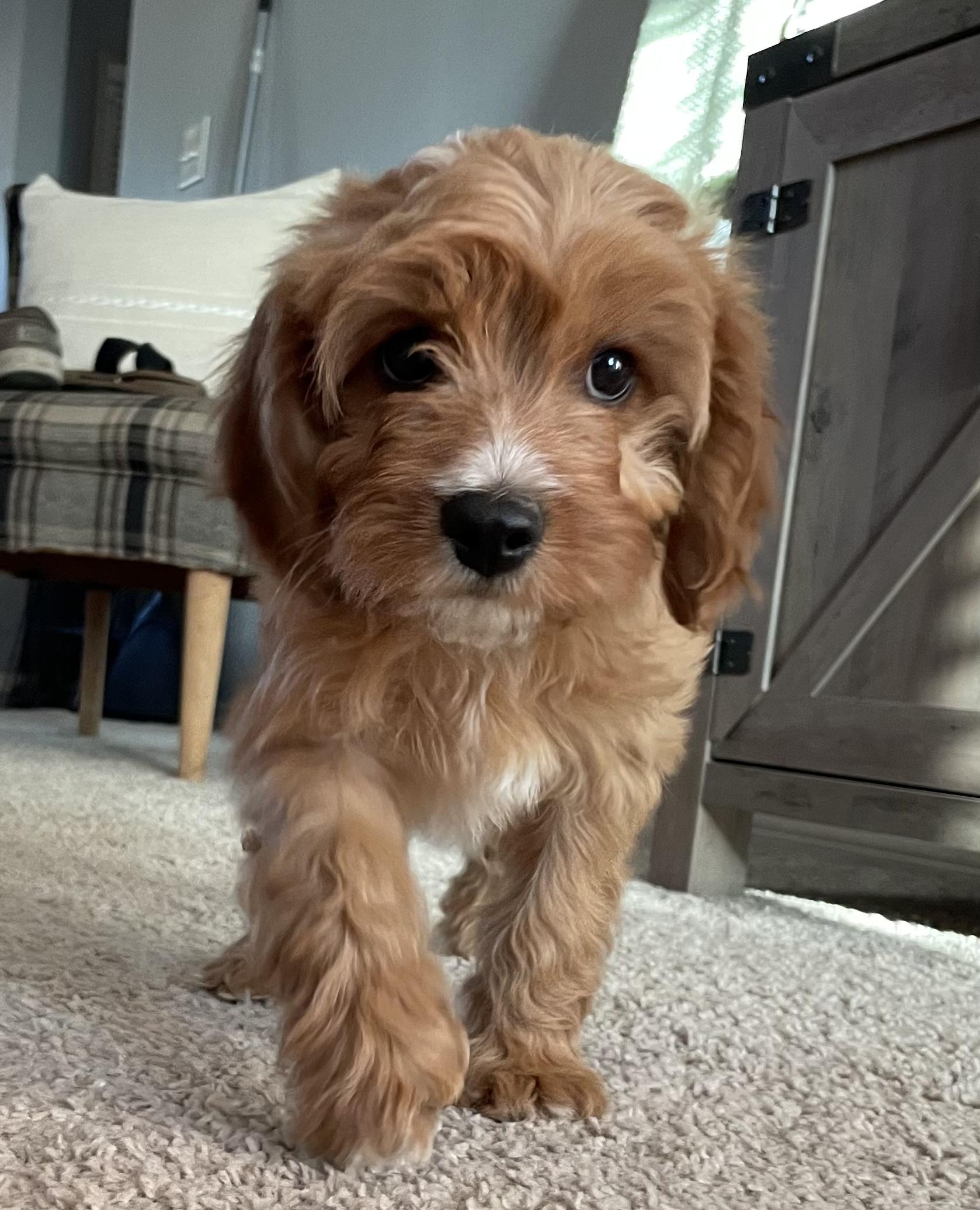 Ginger is a female Cavapoo. Carefully selected as a great representative of her breed, Jenna decided to make her part of their program. Jenna has passed Good Dog’s screening process, which involved a review of their breeding practices, environment, and the mental and physical health of their dogs.