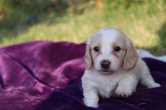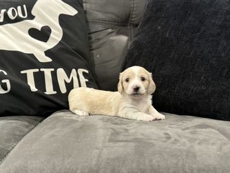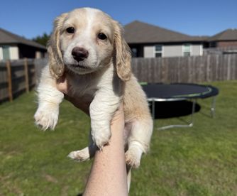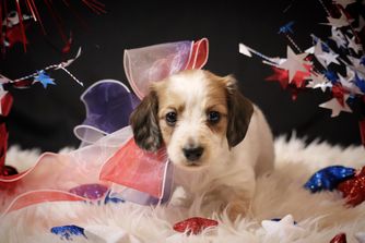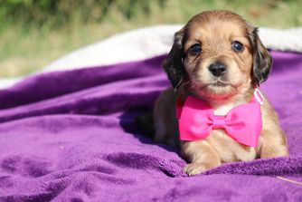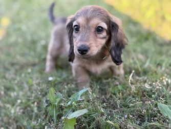 Lil bit is a female Dachshund. Carefully selected as a great representative of her breed, Jamie decided to make her part of their program. Jamie has passed Good Dog’s screening process, which involved a review of their breeding practices, environment, and the mental and physical health of their dogs.