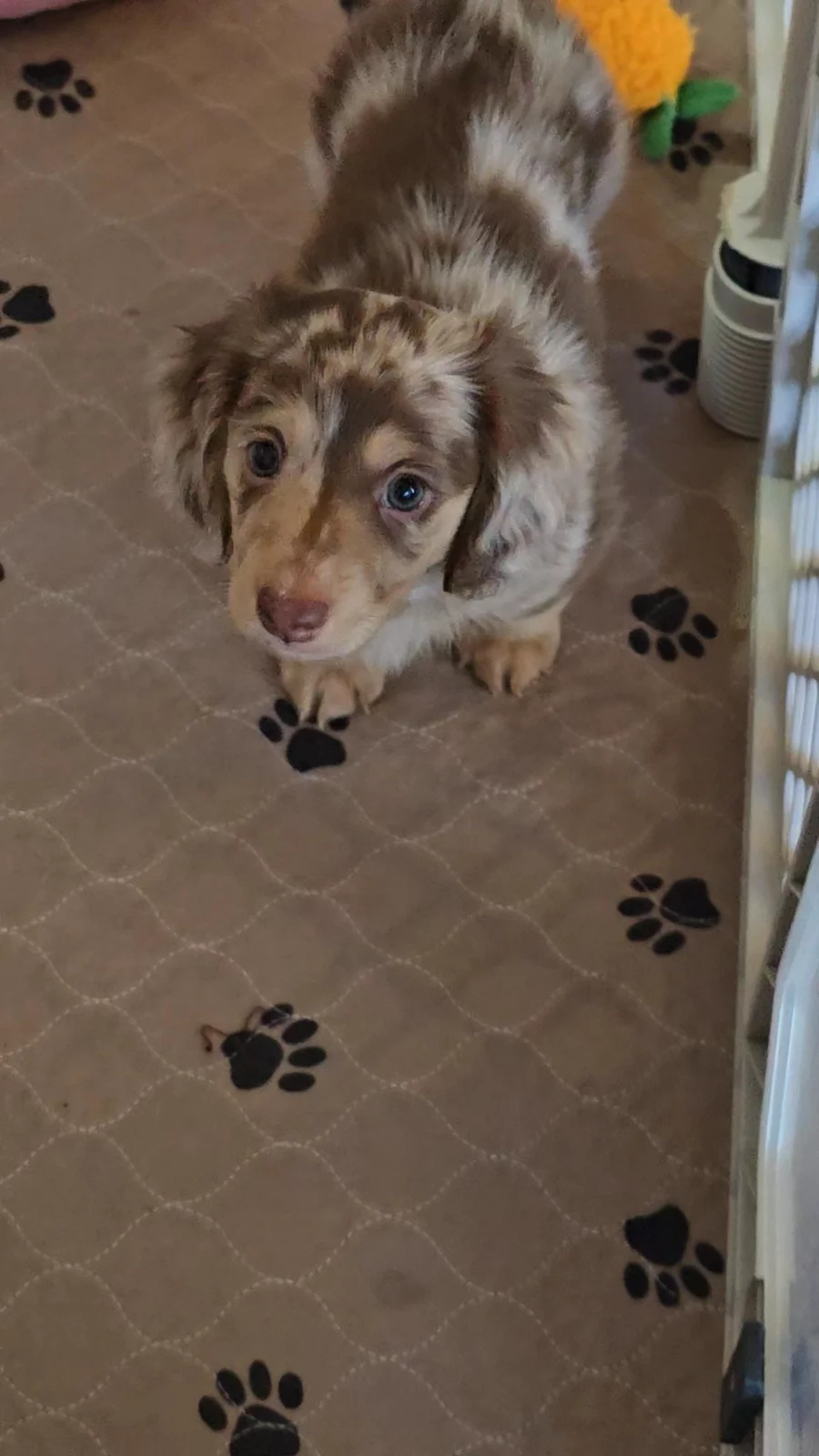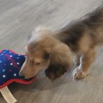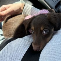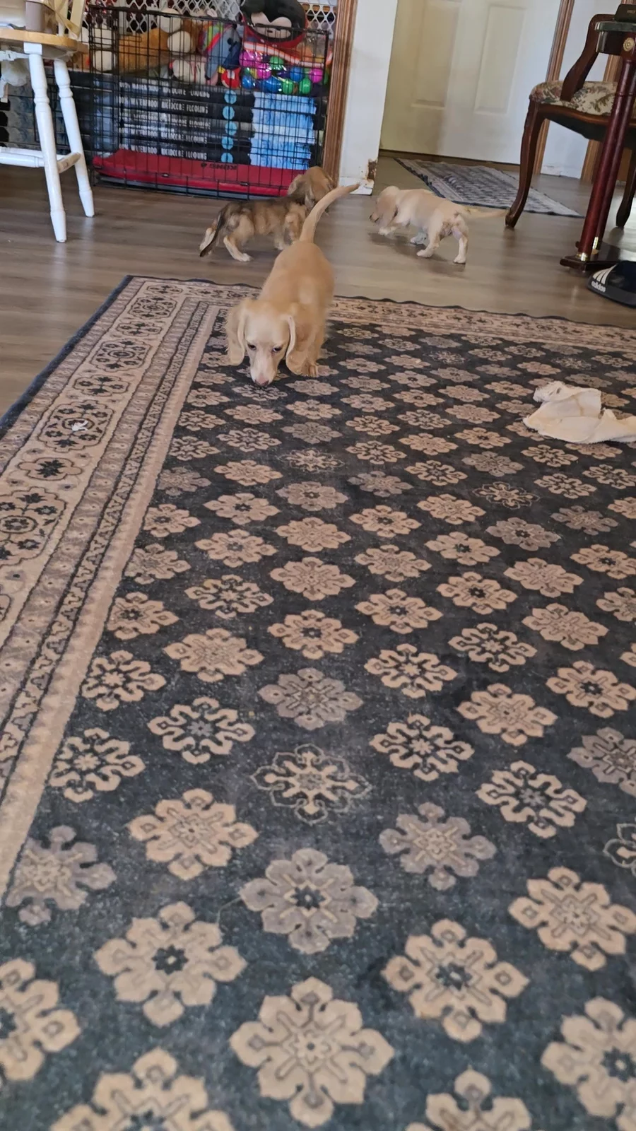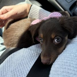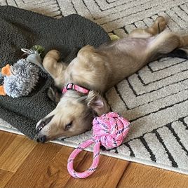 This little (new name Beanie) girl is so full of fun and energy that it is all day entertainment! She has a little ways to go with potty training but the accidents are so small it is not overwhelming! She is a cuddly little thing and has made me her BFF. She has a multitude of toys and seems to be really good at shaking them to death😂. She is hilarious when she gets a burst of speed from the crazies and runs a few laps around the kitchen island🤪 She learns quickly and makes us laugh! The only drawbacks to this little girl is I realized I have to be with her at all times outside as we have Great Horned Owls and Hawks in the neighborhood! So far all the neighborhood dogs love her!