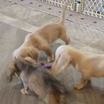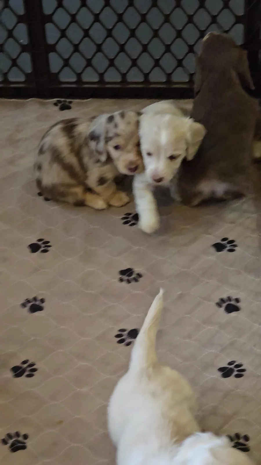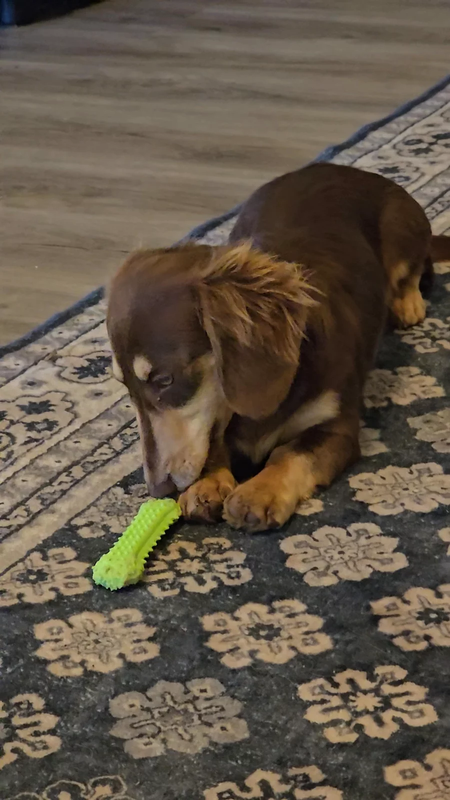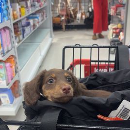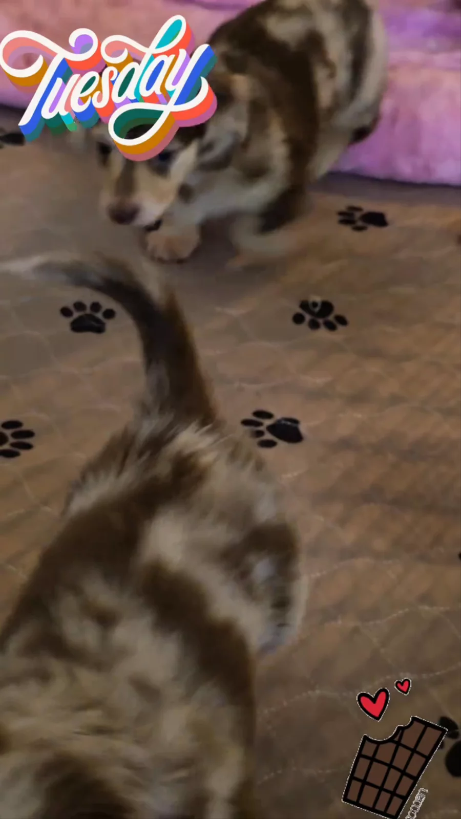 This little (new name Beanie) girl is so full of fun and energy that it is all day entertainment! She has a little ways to go with potty training but the accidents are so small it is not overwhelming! She is a cuddly little thing and has made me her BFF. She has a multitude of toys and seems to be really good at shaking them to death😂. She is hilarious when she gets a burst of speed from the crazies and runs a few laps around the kitchen island🤪 She learns quickly and makes us laugh! The only drawbacks to this little girl is I realized I have to be with her at all times outside as we have Great Horned Owls and Hawks in the neighborhood! So far all the neighborhood dogs love her!
