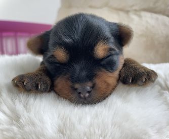 Puppy prices include a $500 non-refundable deposit and between $3,000 - $4,500 final payment, before taxes & fees.