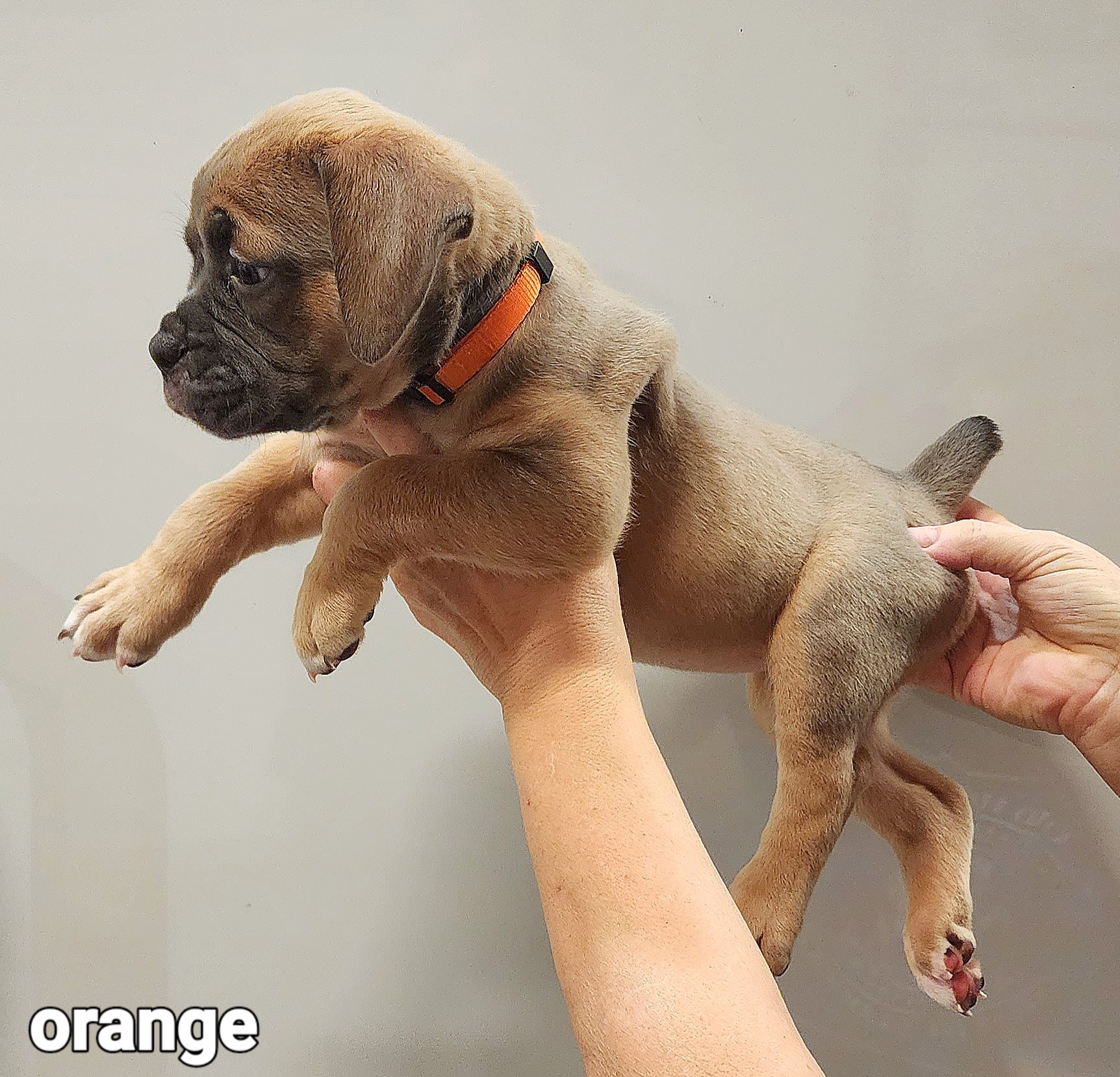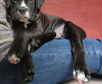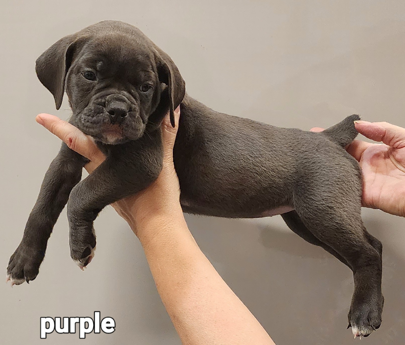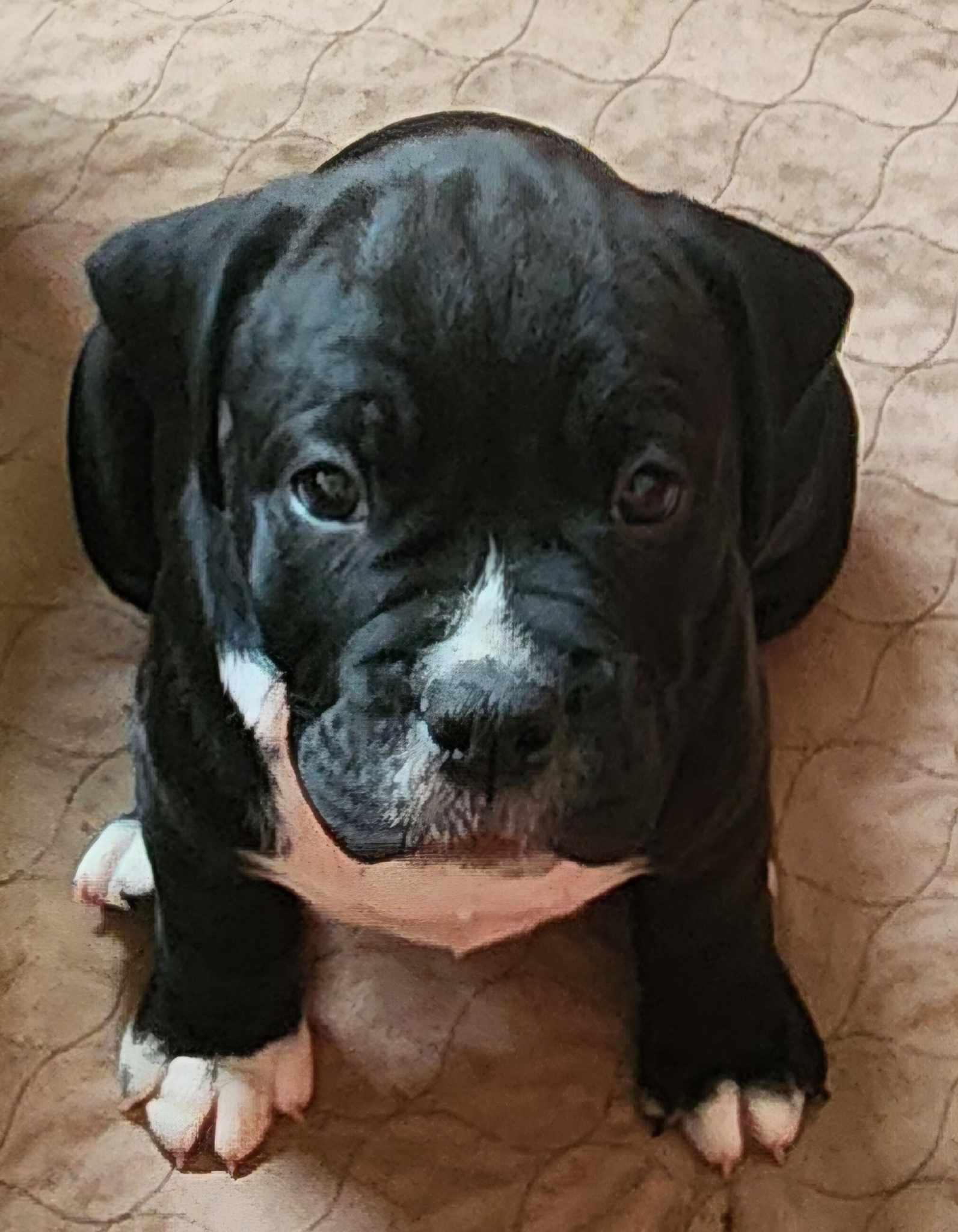Our puppies include brown brindle and black and white. Colors will vary depending on the parent dogs.
