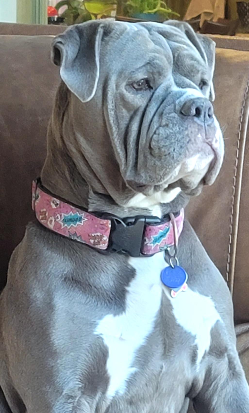 Winston is a male Olde English Bulldogge. Carefully selected as a great representative of his breed, Ruth decided to make him part of their program. Ruth has passed Good Dog’s screening process, which involved a review of their breeding practices, environment, and the mental and physical health of their dogs.