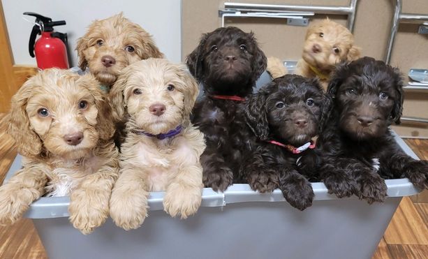 Our puppies include cream, apricot, and parti. Colors will vary depending on the parent dogs.