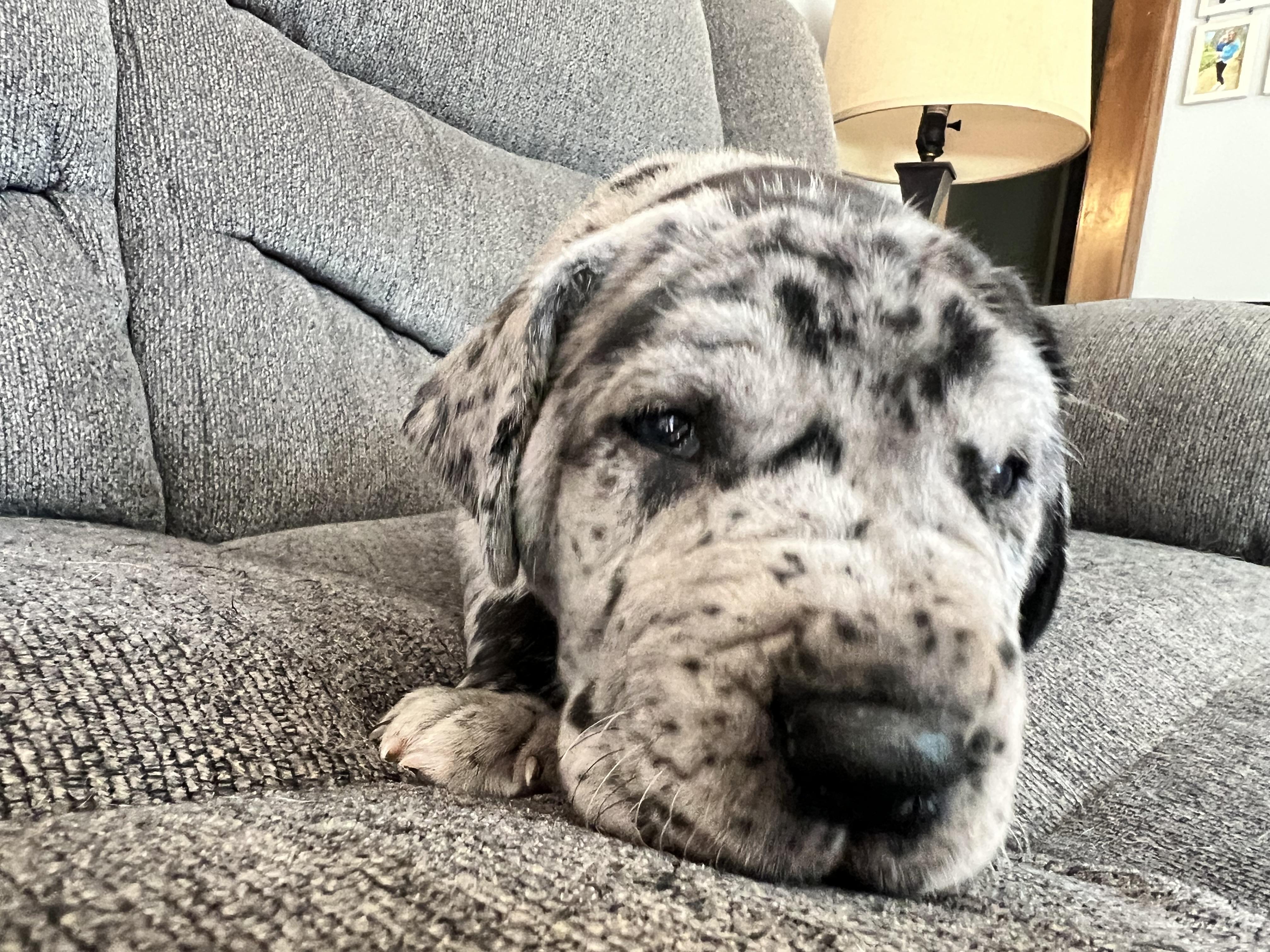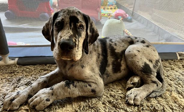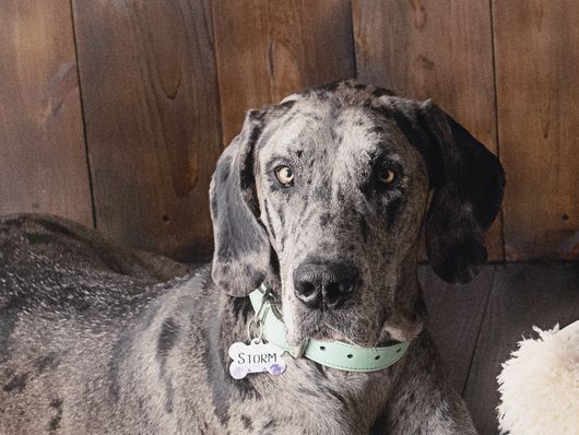 Storm is a female Great Dane. Carefully selected as a great representative of her breed, Cheyenne decided to make her part of their program. Cheyenne has passed Good Dog’s screening process, which involved a review of their breeding practices, environment, and the mental and physical health of their dogs.
