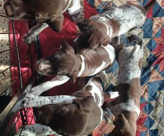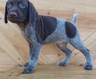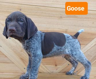 Our French Bulldog puppies include brindle, cream, blue, and brindle and white. German Shorthaired Pointer puppies include liver and white and liver roan. Colors will vary depending on the parent dogs.