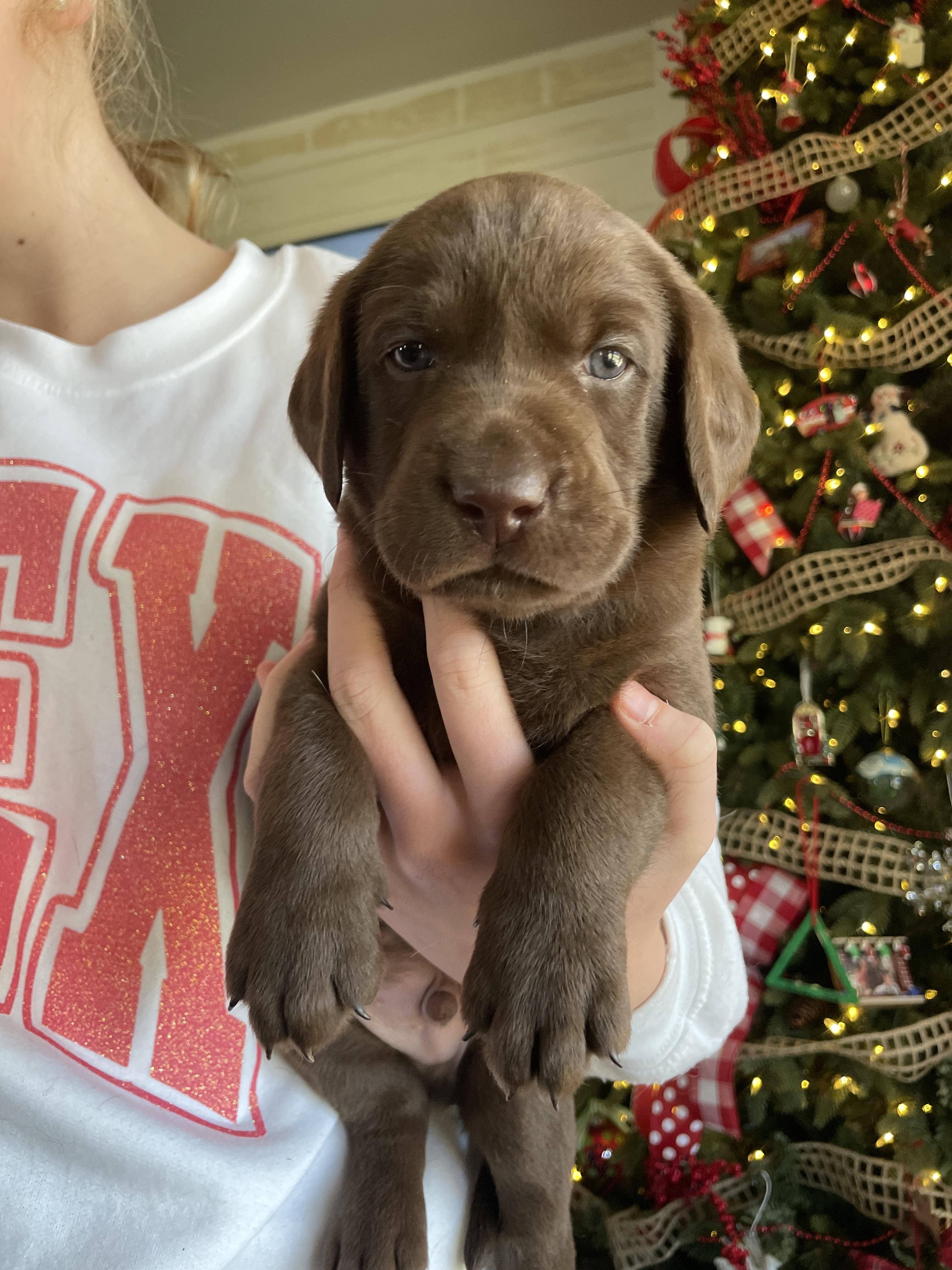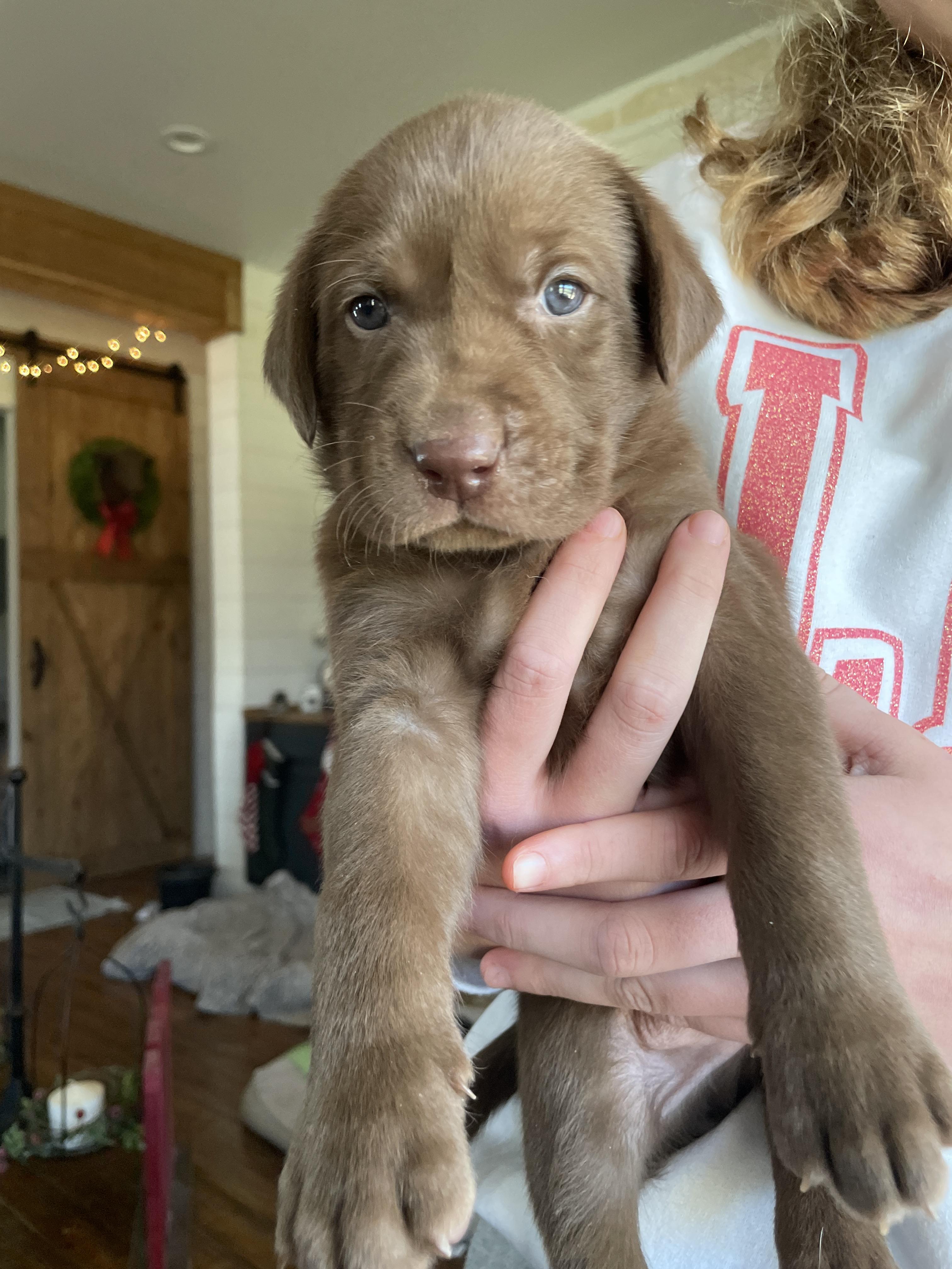 Our puppies include chocolate and yellow. Colors will vary depending on the parent dogs.