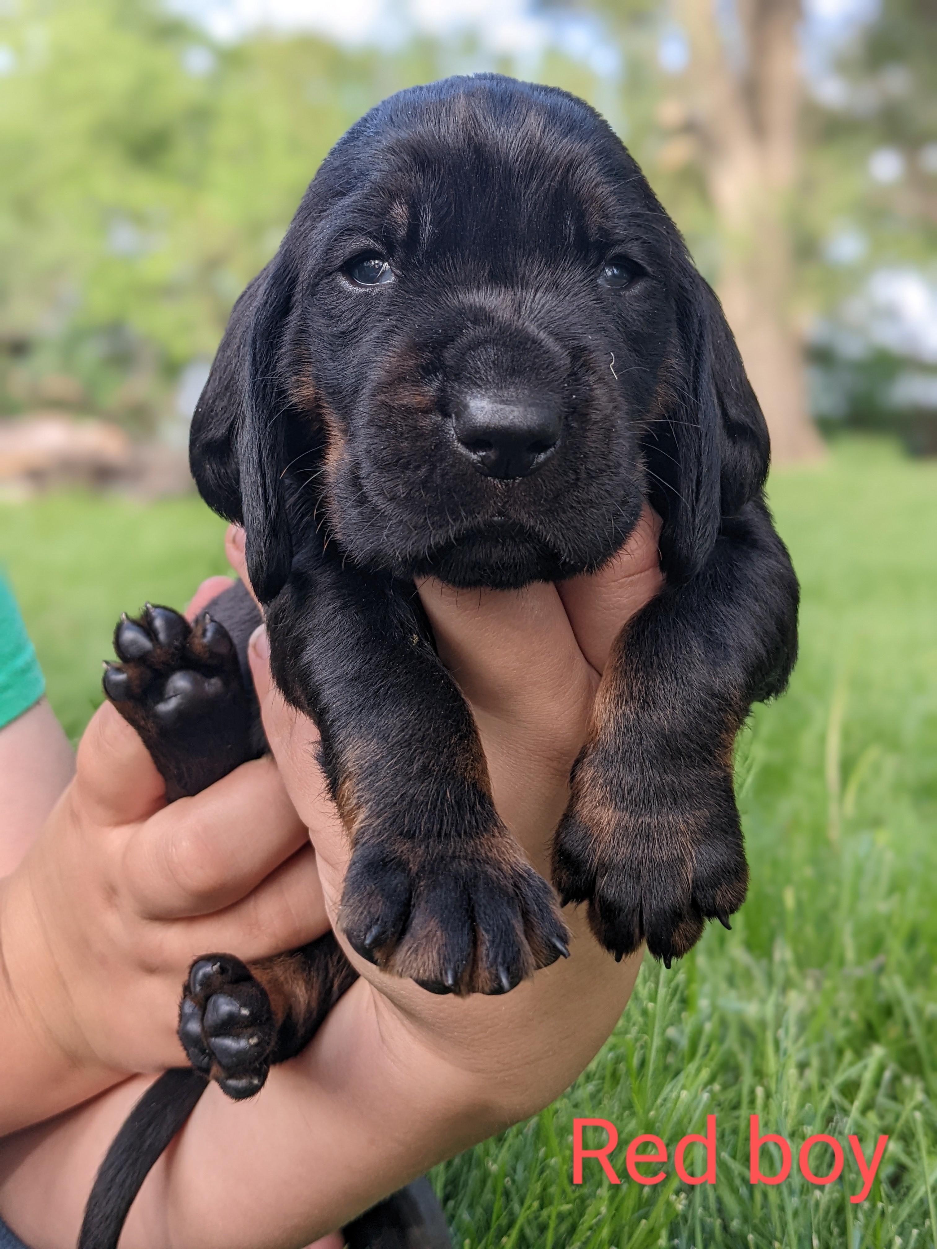I'm Raven K., the breeder behind Old Soul Black & Tan Coonhounds located in Murdock, NE. Our dogs are, first and foremost, our companions. We want to provide dogs that make great family pets! AKC Black and Tan Coonhounds and Bracco Italianos are wonderful family pets when bred for an appropriate temperament. We strive to give them every advantage so they can accomplish any and every goal put in front of them, and we are proud of what they do!