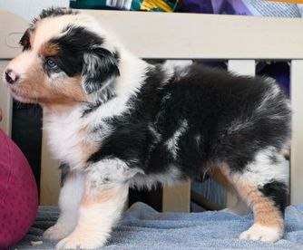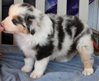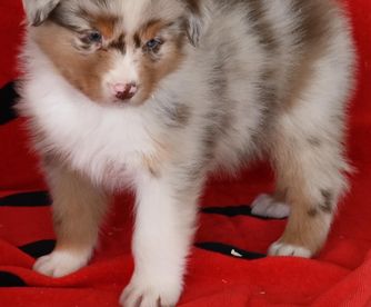 Our puppies include black, red merle, blue merle, and red. Colors will vary depending on the parent dogs.