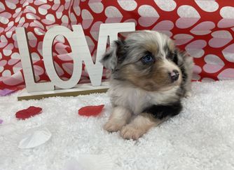 Bella is a female Miniature Australian Shepherd. Carefully selected as a great representative of her breed, Chevelle decided to make her part of their program. Chevelle has passed Good Dog’s screening process, which involved a review of their breeding practices, environment, and the mental and physical health of their dogs.