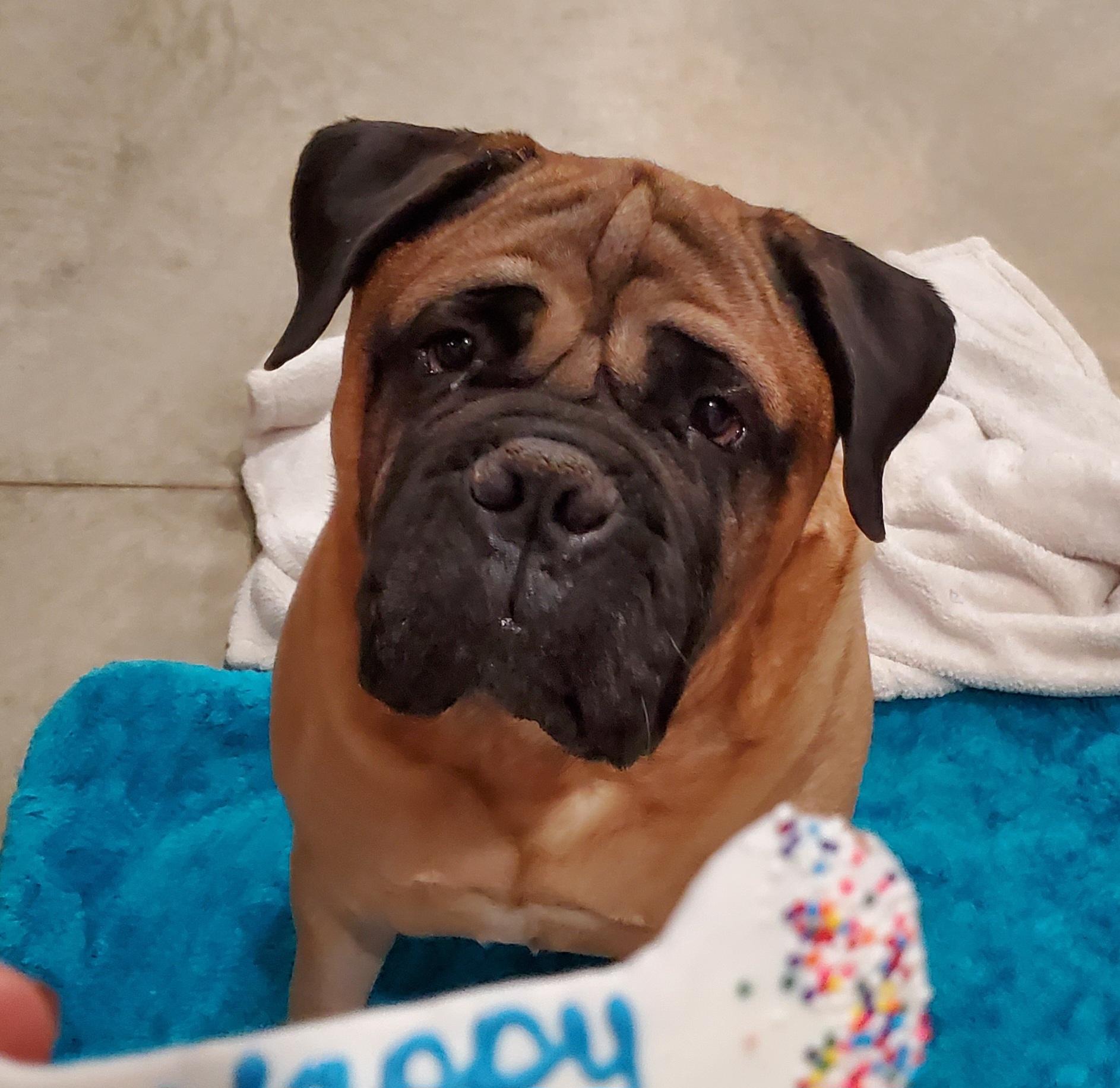 Frankie is a male Bullmastiff. Carefully selected as a great representative of his breed, Jessica decided to make him part of their program. Jessica has passed Good Dog’s screening process, which involved a review of their breeding practices, environment, and the mental and physical health of their dogs.