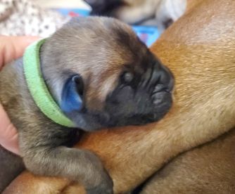 Dottie is a female Bullmastiff. Carefully selected as a great representative of her breed, Jessica decided to make her part of their program. Jessica has passed Good Dog’s screening process, which involved a review of their breeding practices, environment, and the mental and physical health of their dogs.