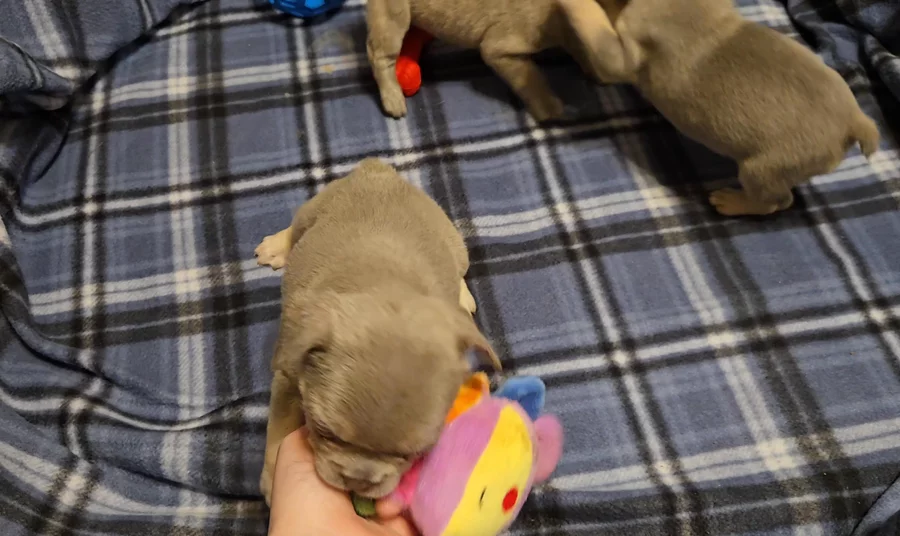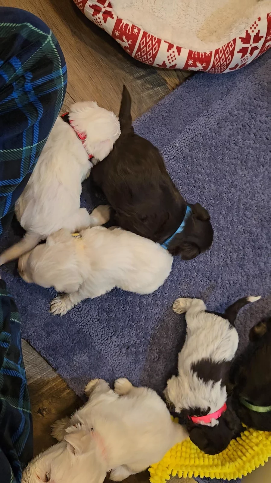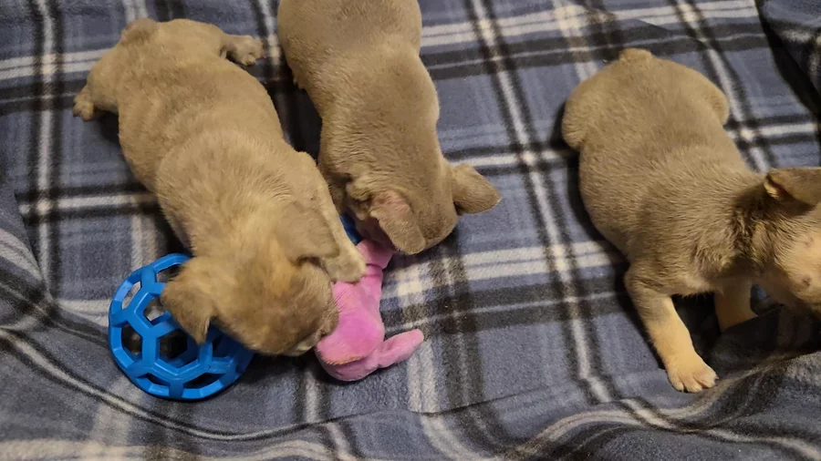 Our Miniature Schnauzer puppies include wheaten, white, parti, liver, black, salt and pepper, and black and silver. French Bulldog puppies include cream, fawn, tricolors, blue fawn, blue, and black and tan. Colors will vary depending on the parent dogs.