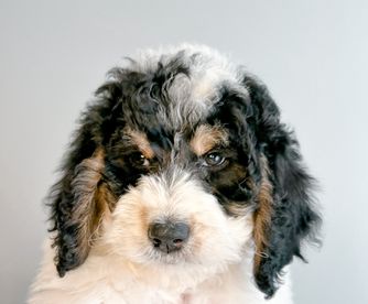Our Bernedoodle puppies include brown, red, and tri-color. Bernese Mountain Dog puppies are tri-color. Colors will vary depending on the parent dogs.