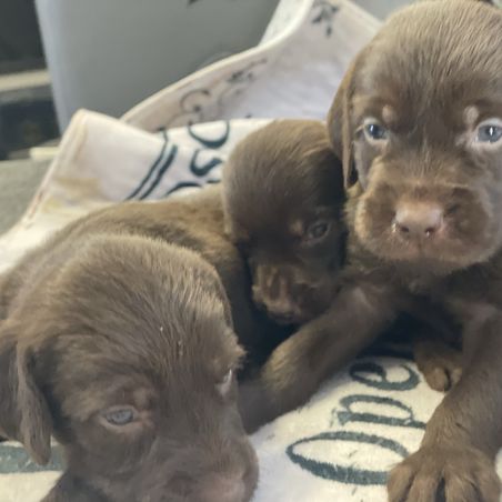 Our puppies are liver. Colors will vary depending on the parent dogs.