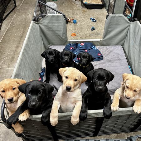 Our puppies include black, chocolate, and yellow. Colors will vary depending on the parent dogs.
