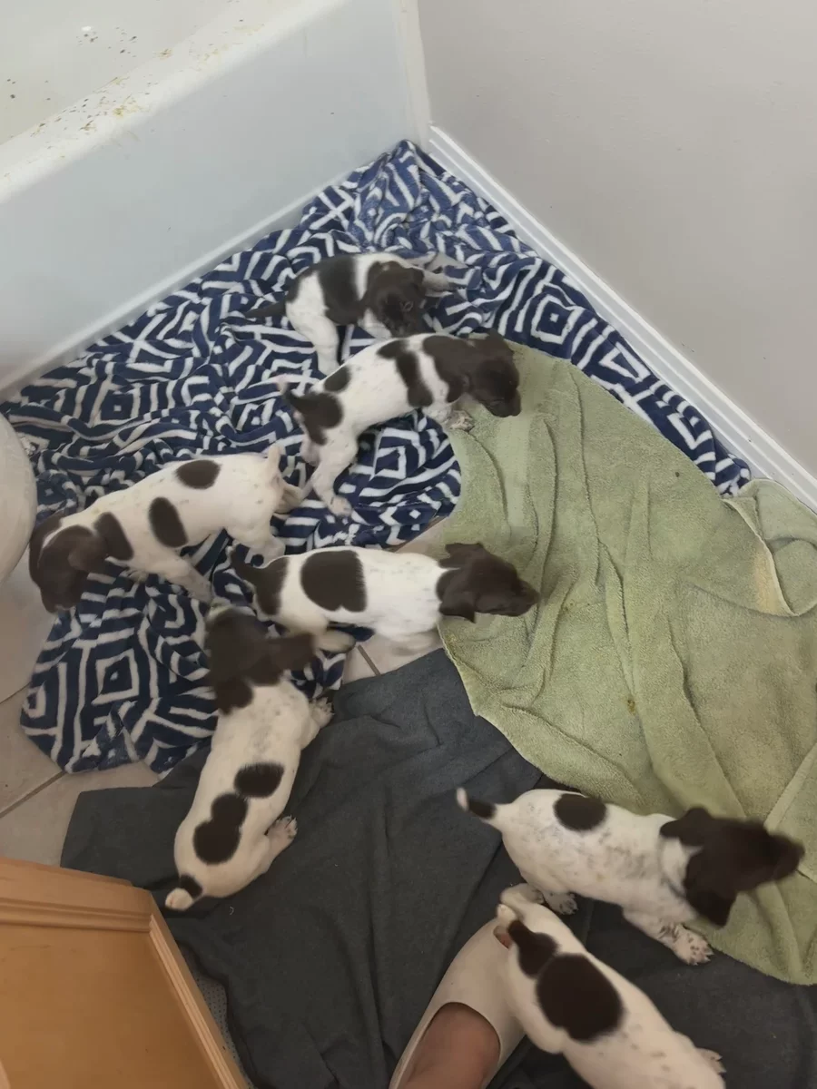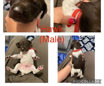 On Point Gun dogs of Utah, was the first website I came across, featuring the most beautiful GSP pups and their parents. I had just lost my beloved 9 year old GSP, Micah, to an undetected liver mass. I wasn't even sure if I was ready for another baby so soon, until I saw 'Muffin'. It was love at first sight! Jaina, our breeder Mom, was great! She asked about me and my family, where we lived, etc, and sent me a message saying she thought Muffin would be the perfect match for us. The process was quite easy, and the website was user friendly enough for this 60 plus year old woman. The next thing I knew, I was putting a down payment on our beautiful girl so no one would claim her before I did. Jaina answered all of my questions in a timely manner, regularly sent photos of Muffin through the website, and gave my girl kisses and hugs for me when i asked her to. I could tell from the photos she sent that all the dogs involved, parent dogs and their pups, were all very much loved, and well cared for. Though we're still in mostly puppy mode at 3 and a half months, our girl, whom we renamed 'Billie Wren', has been easy to train so far and minds quite well. Billie is just gorgeous, and a funny girl. When she greets people, she gets the cutest little cheesy grin (bonus!), showing her little teeth, and letting her personality show through in her friendly smile. Jaina was nothing but a pleasure to work with, and I would highly recommend her services.