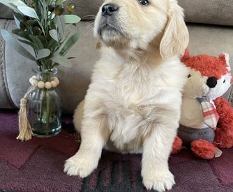 Golden Retriever puppies include golden and light golden. Colors will vary depending on the parent dogs.
