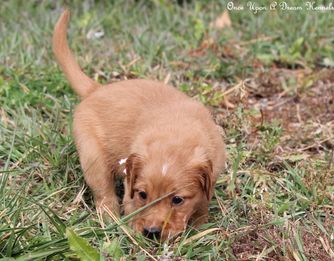 We strongly focus on health and temperament. We fully test all of our dogs for their required testing and more. We carefully pick strong, healthy lines with drives for the purpose we are striving to produce. We have a working/sport line as well as a family/service line in our Golden program. We think goldens are the ultimate dog and can go so many different directions!