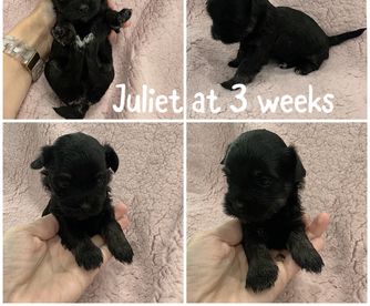 Cali is black with tan points, weighing 13 lbs. Cali is third generation from our first Havanese (Rosie Bear). Cali is a sweet cuddler, loves to be held and snuggle 🥰