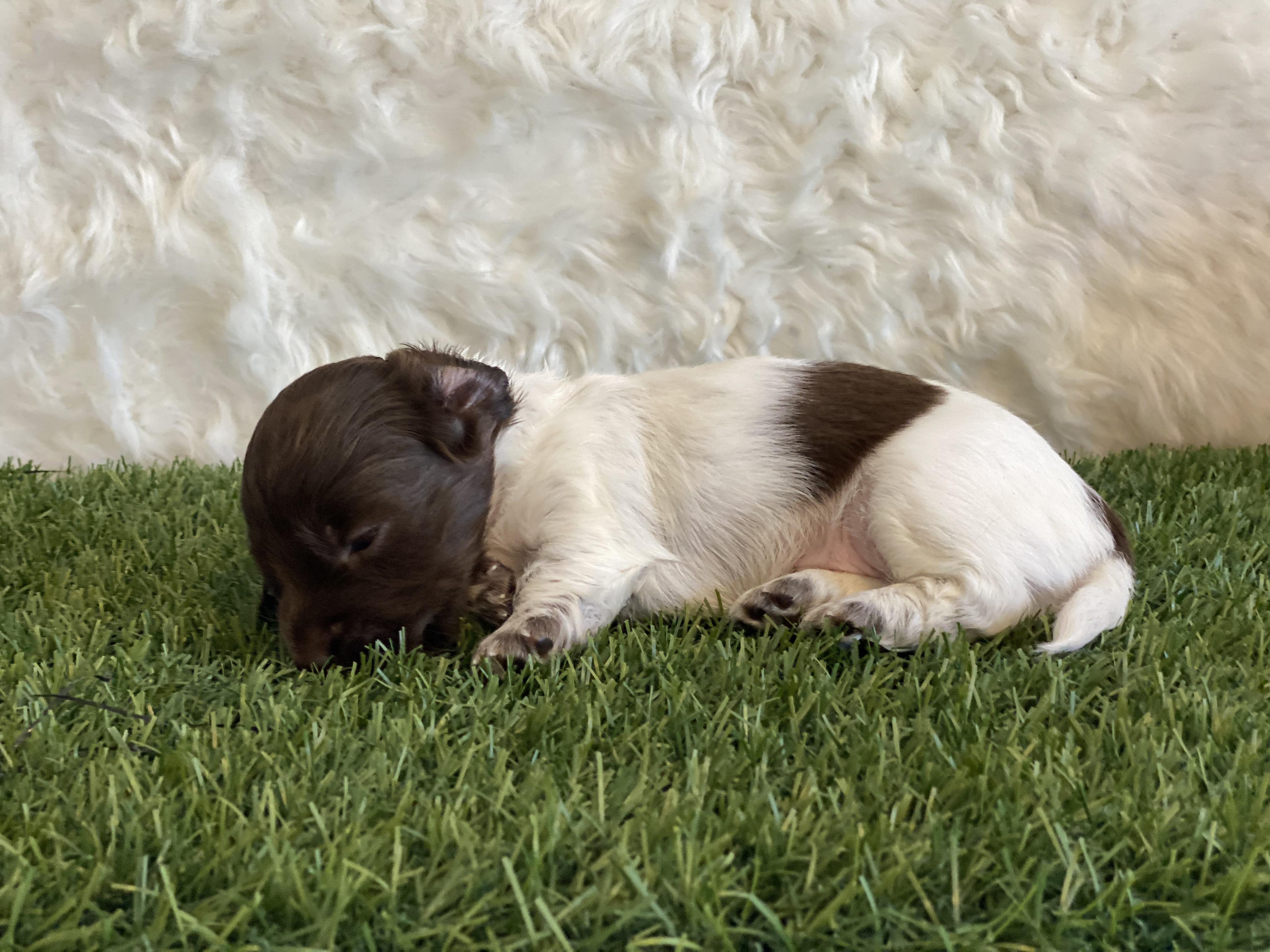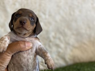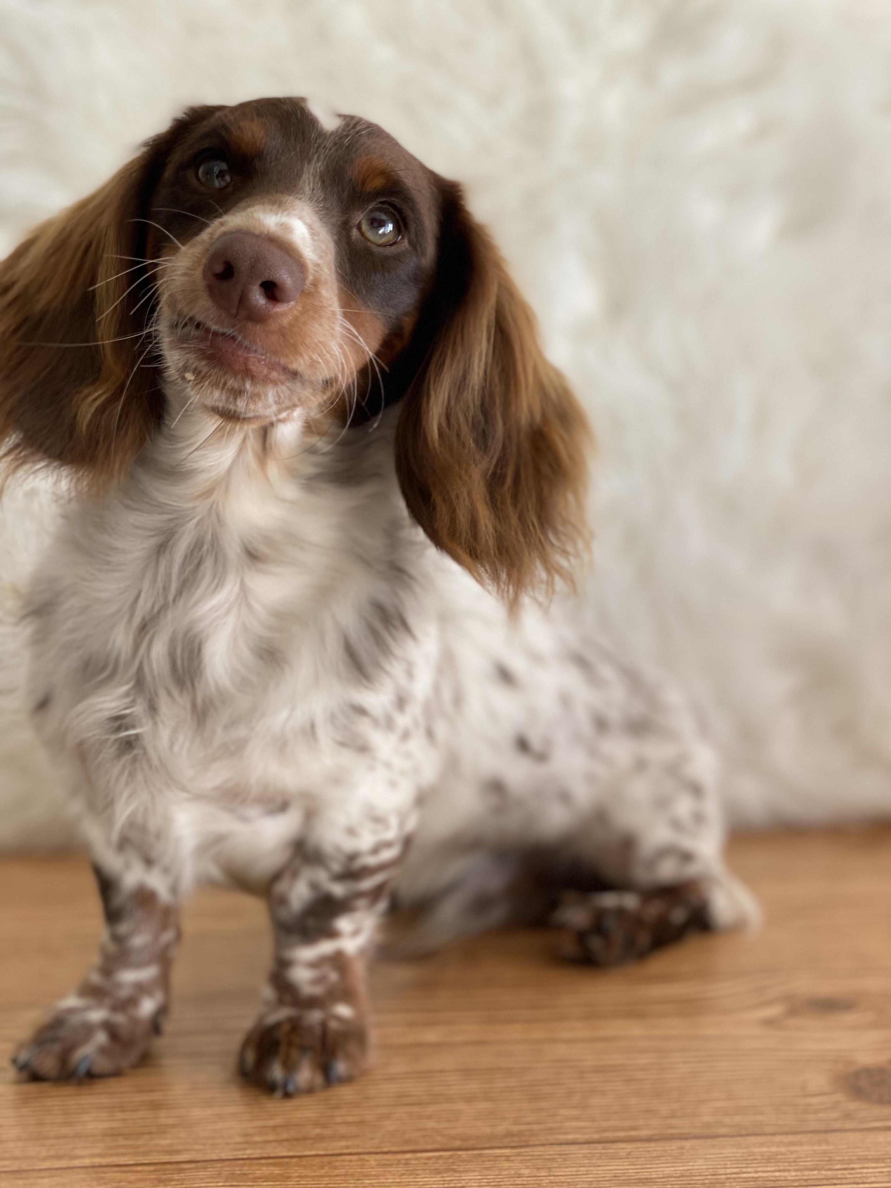 Shiloh is a female Dachshund. Carefully selected as a great representative of her breed, Kiara decided to make her part of their program. Kiara has passed Good Dog’s screening process, which involved a review of their breeding practices, environment, and the mental and physical health of their dogs.