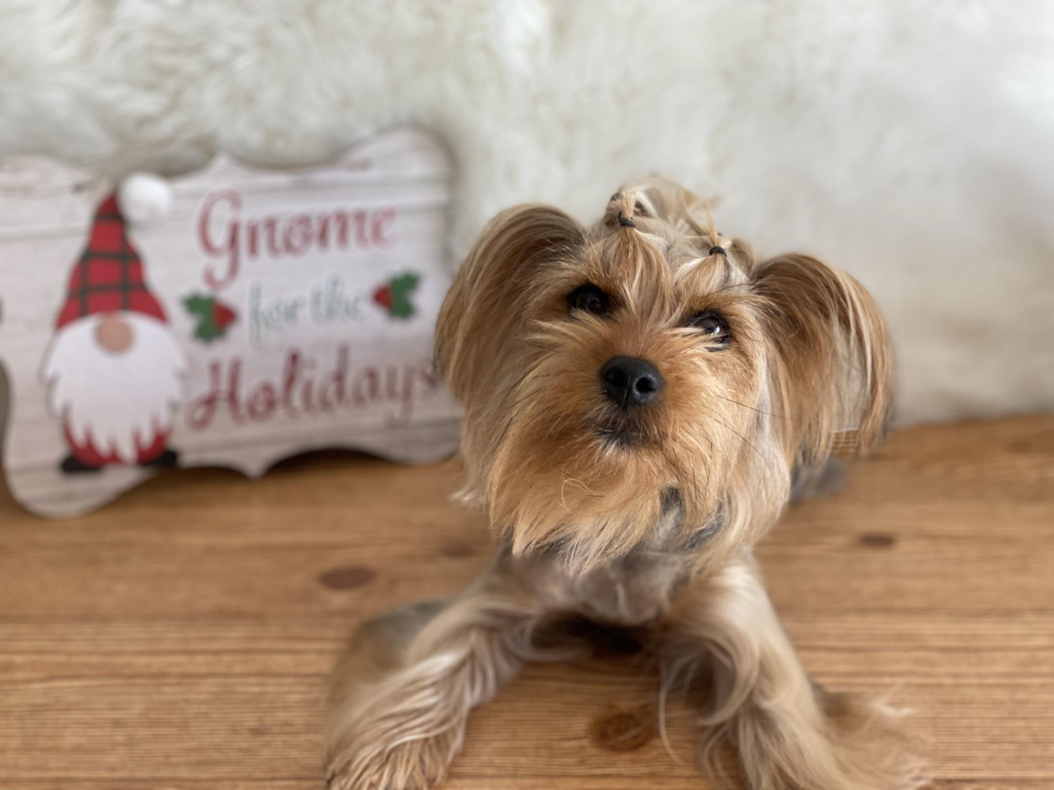 Tuesday is a female Yorkshire Terrier. Carefully selected as a great representative of her breed, Kiara decided to make her part of their program. Kiara has passed Good Dog’s screening process, which involved a review of their breeding practices, environment, and the mental and physical health of their dogs.