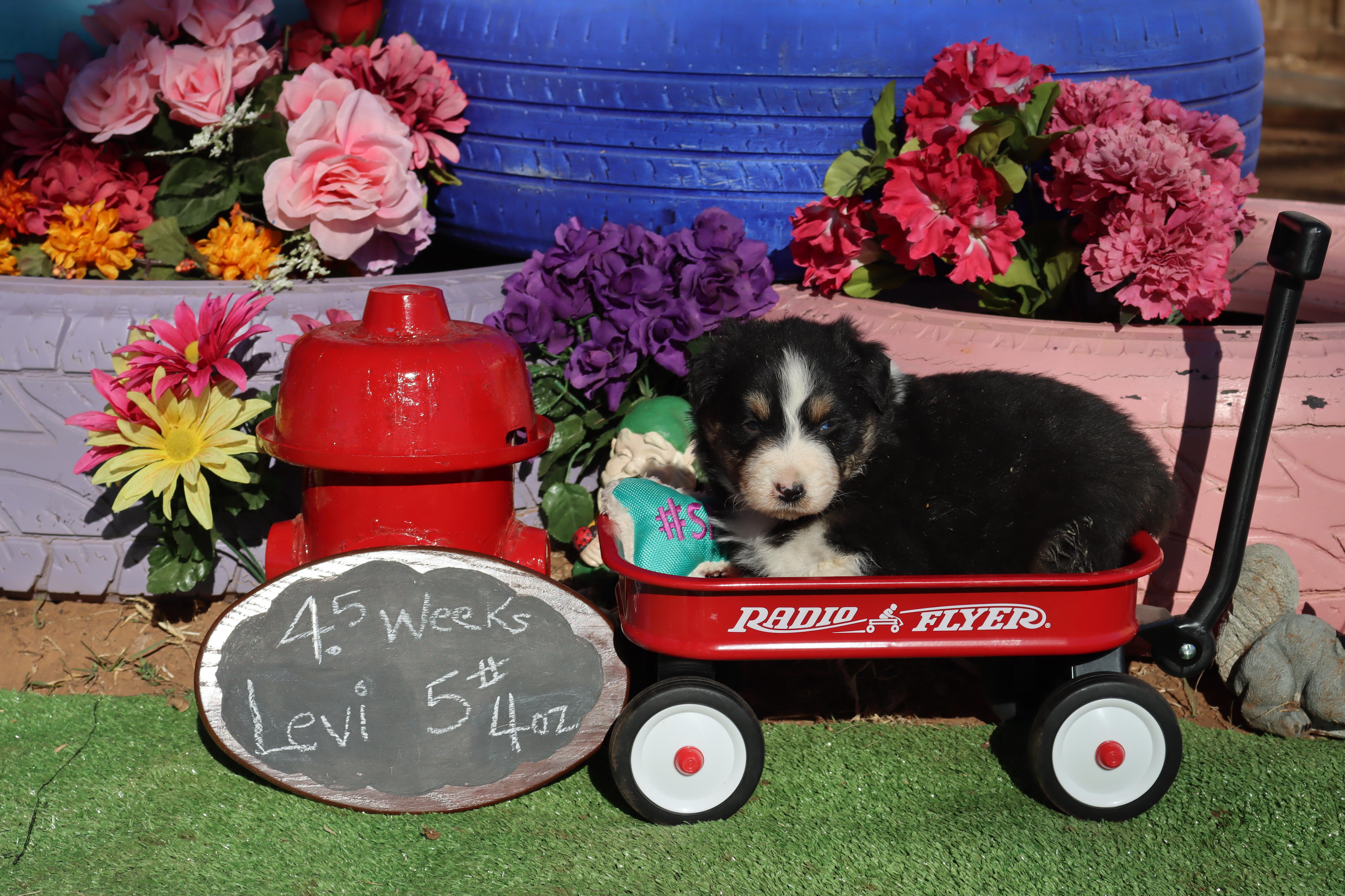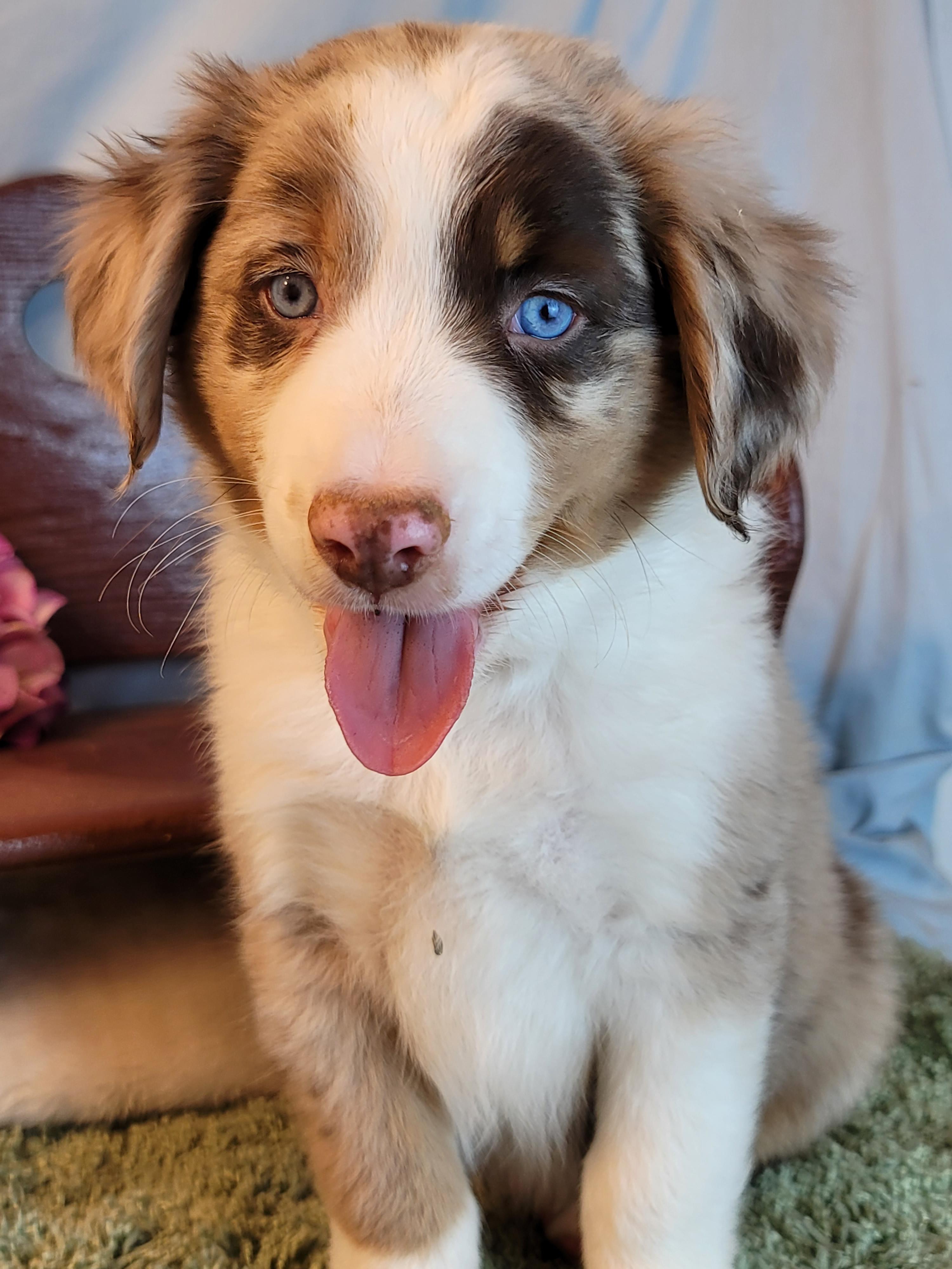 Our Miniature Australian Shepherd puppies include blue merle and red merle. Australian Shepherd puppies include black, red merle, blue merle, and red. Toy Australian Shepherd puppies include black tri, blue merle, red merle, and red tri. Colors will vary depending on the parent dogs.