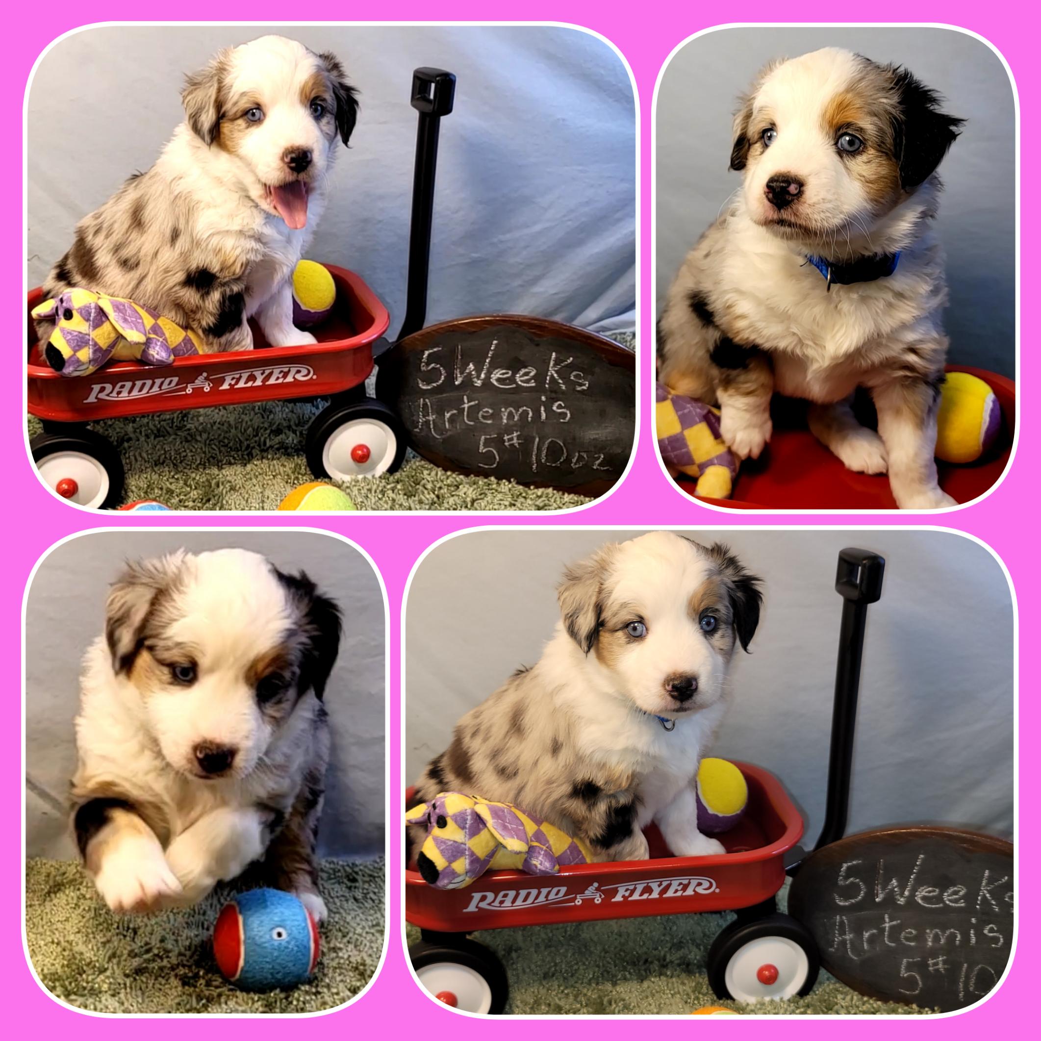 Our Miniature Australian Shepherd puppies are miniature size. Sizes will vary depending on the parent dogs.