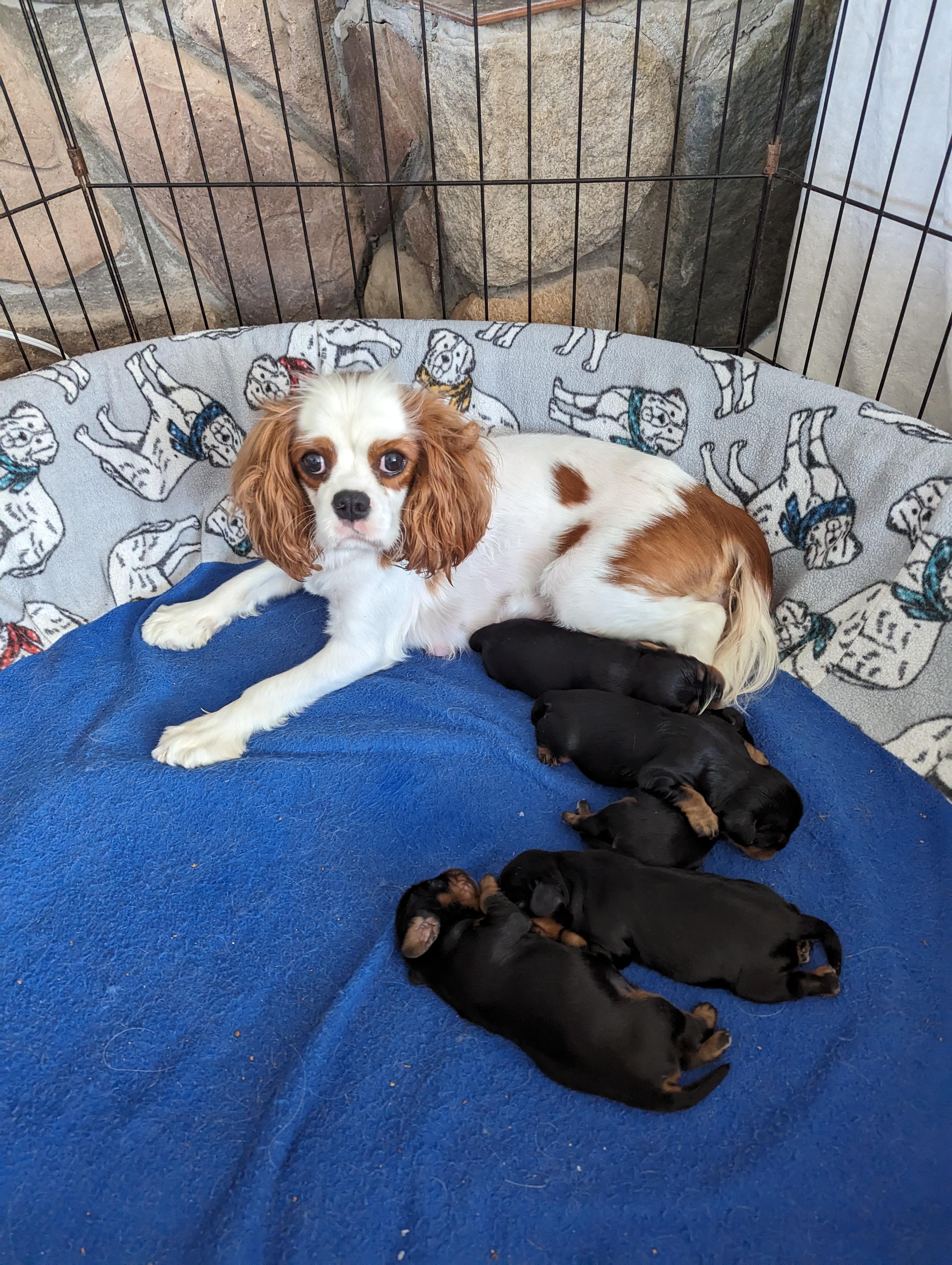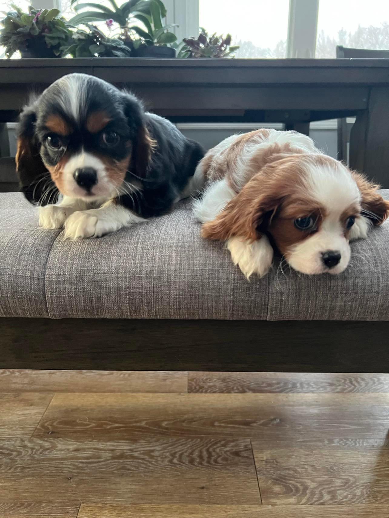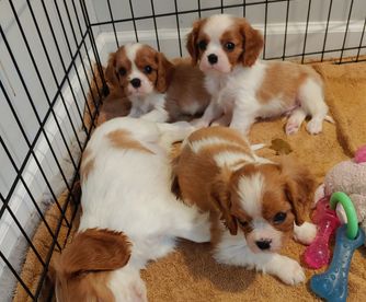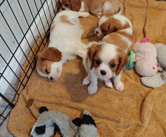 Our puppies include blenheim, ruby, tri-color, and black and tan. Colors will vary depending on the parent dogs.
