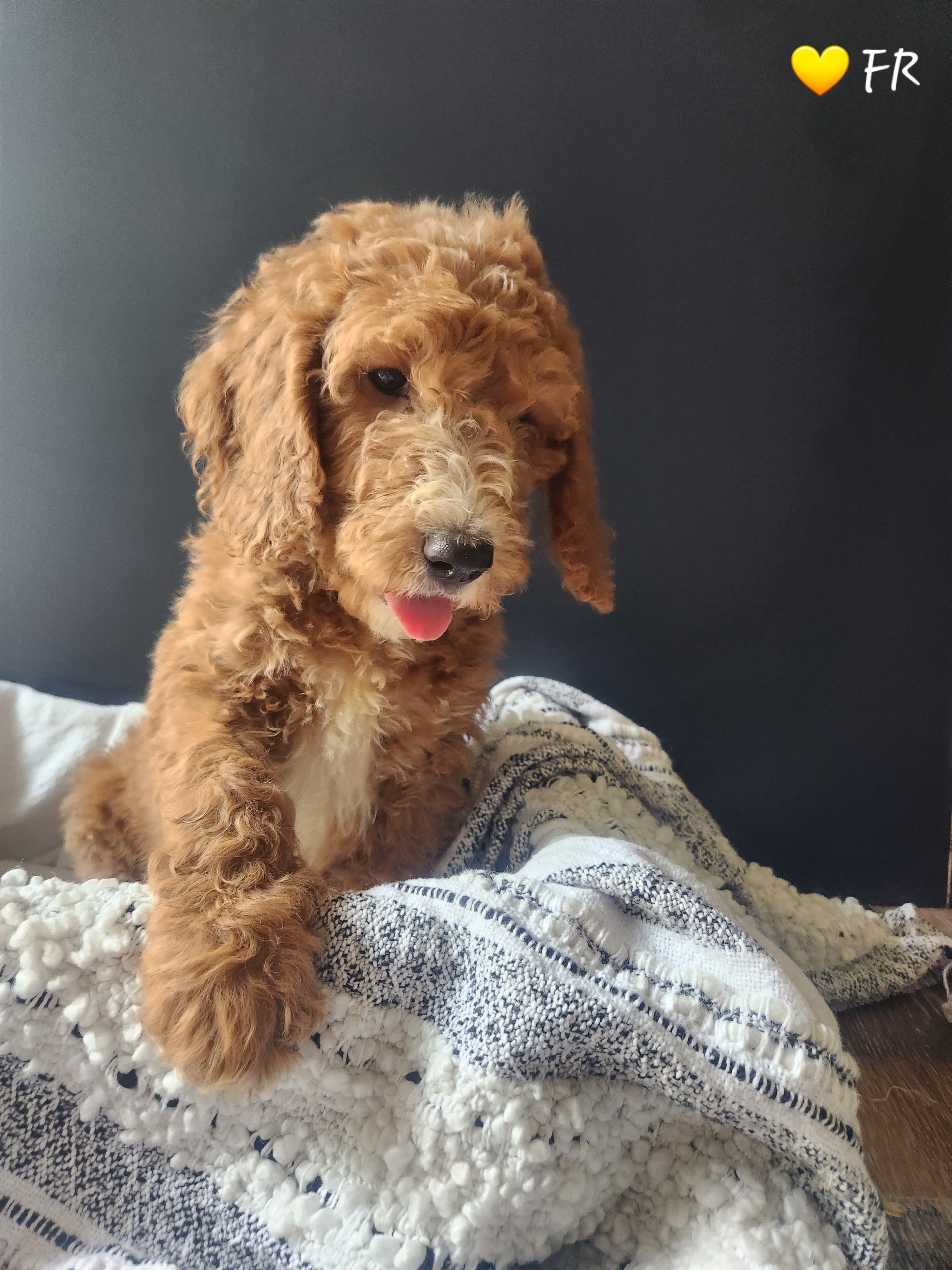 I'm Chanelle V., the breeder behind Oodles of Doodles located in Elmer, NJ. The puppies live in our home & are accustomed to cats and children handling them.