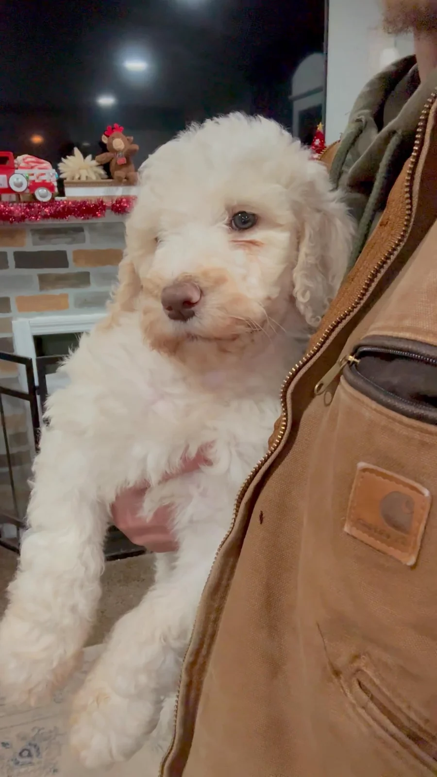 Our Labradoodle puppies include apricot, cream, chocolate, black, and silver. Goldendoodle puppies include cream, chocolate, black, and parti. Colors will vary depending on the parent dogs.