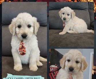 Our Cockapoo puppies include merle, red, black and tan, brown, black and white, and black. Goldendoodle puppies include cream, red, and black. Colors will vary depending on the parent dogs.