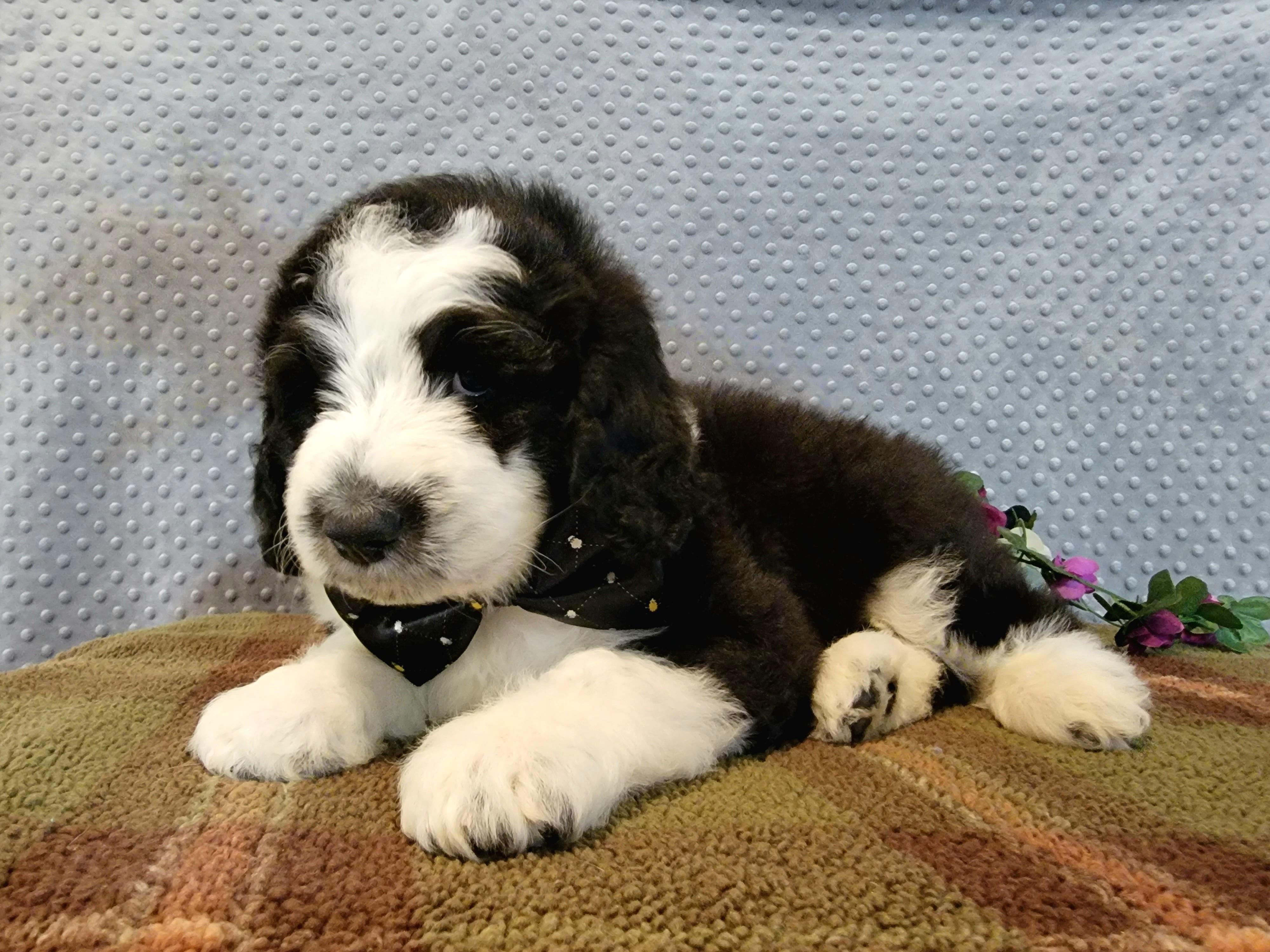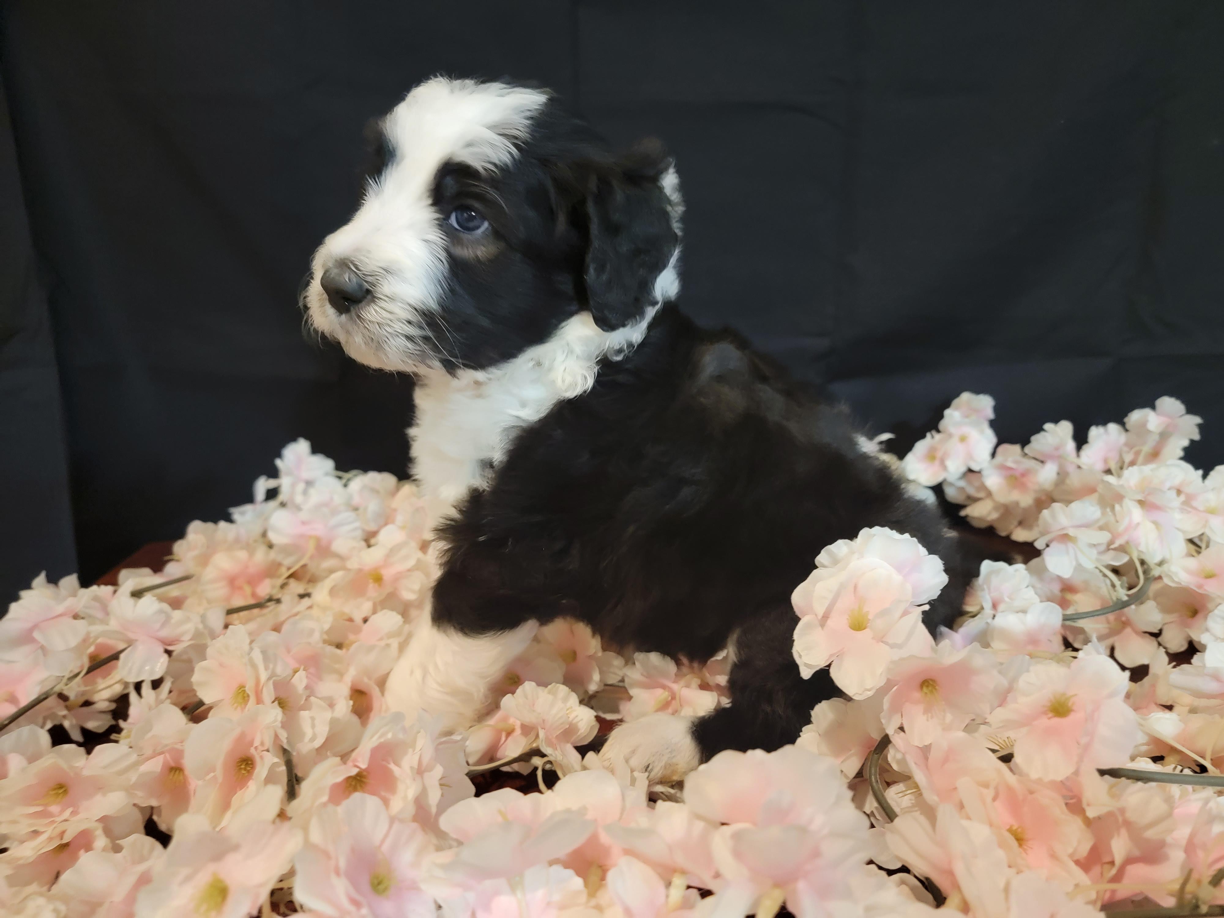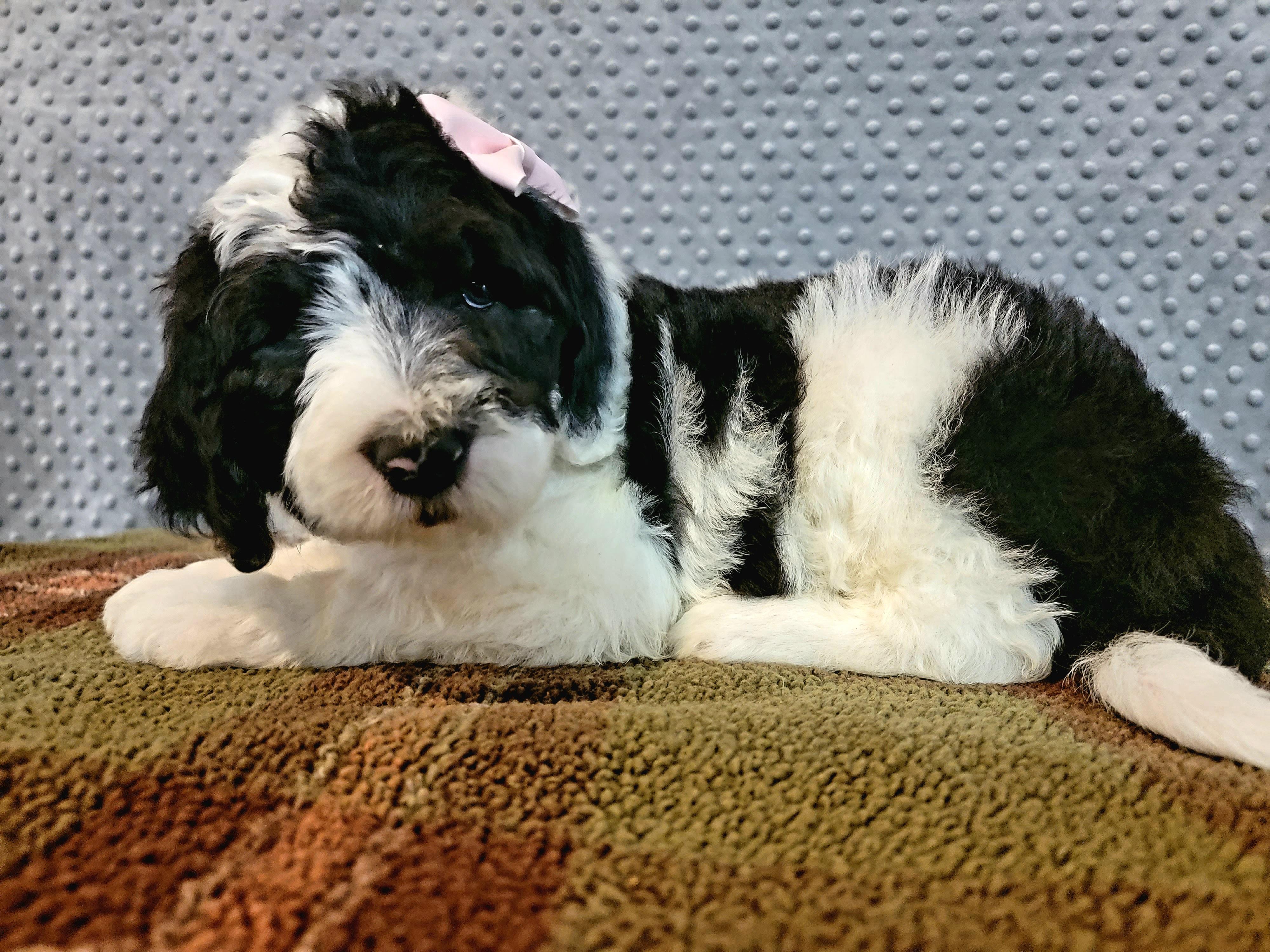 Maggie is a female Sheepadoodle. Carefully selected as a great representative of her breed, Amanda decided to make her part of their program. Amanda has passed Good Dog’s screening process, which involved a review of their breeding practices, environment, and the mental and physical health of their dogs.