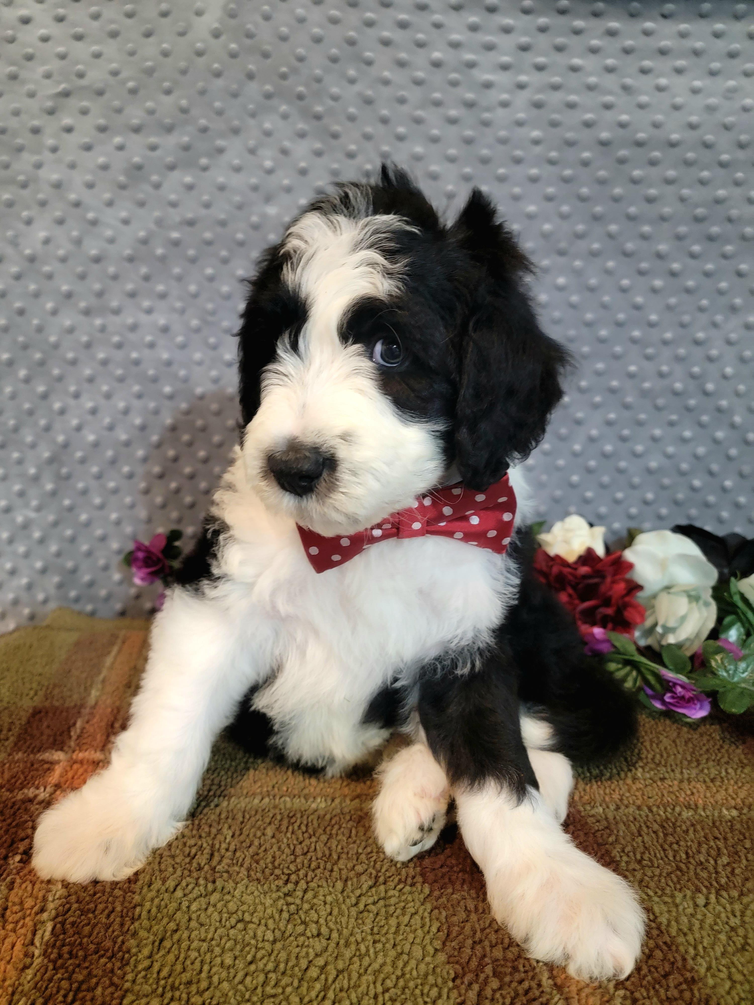 Our Poodle puppies are standard size. Sheepadoodle puppies are standard size. Labradoodle puppies are standard size. Sizes will vary depending on the parent dogs.