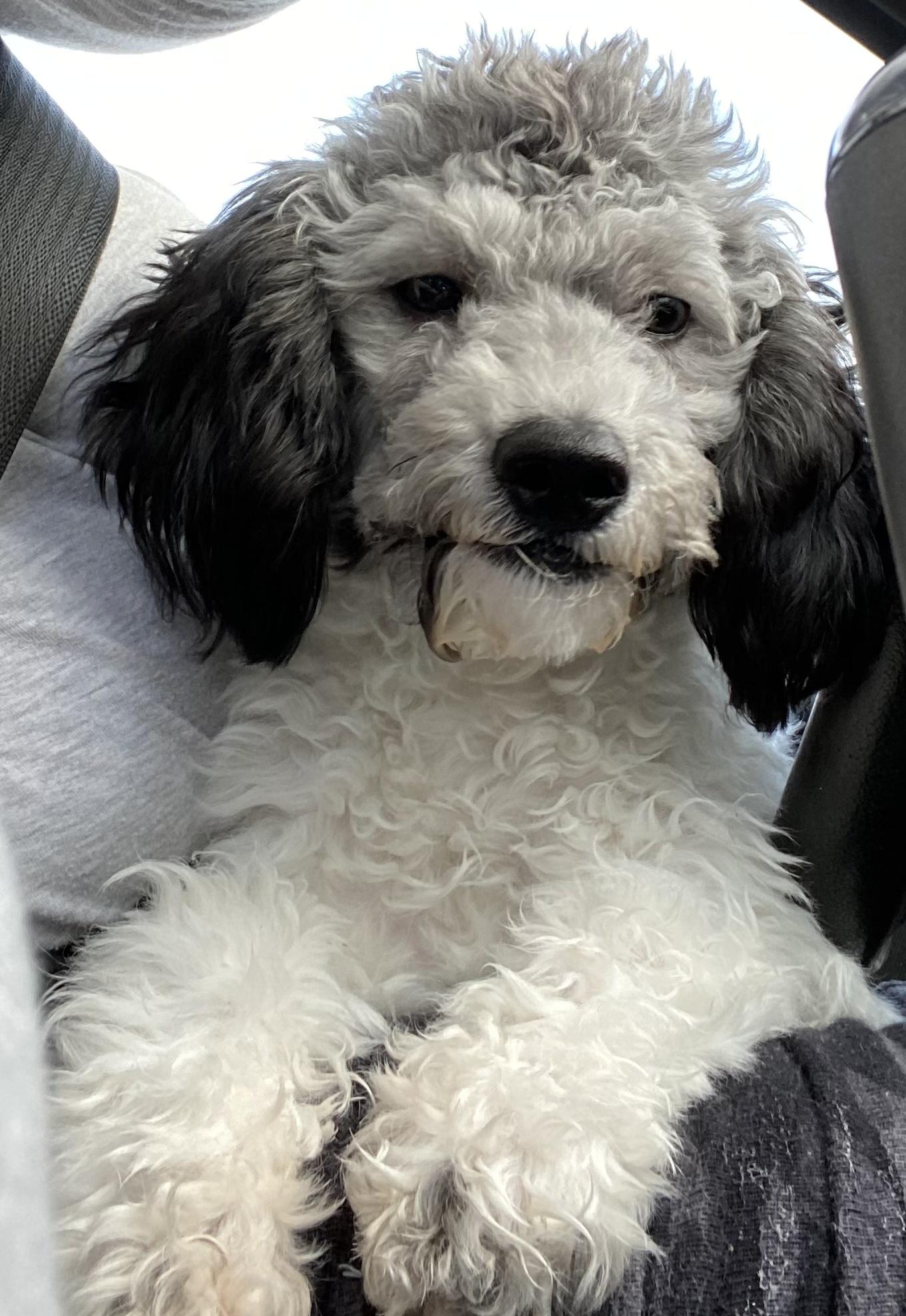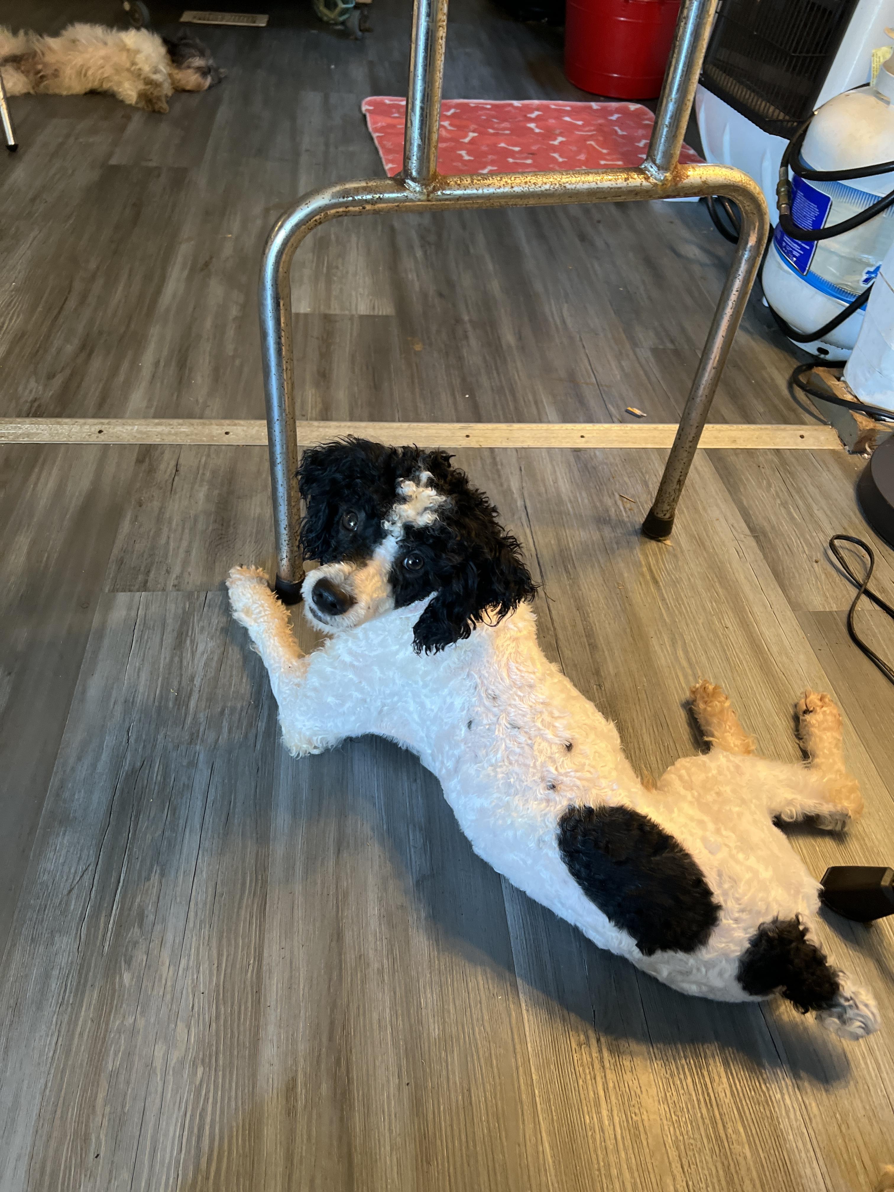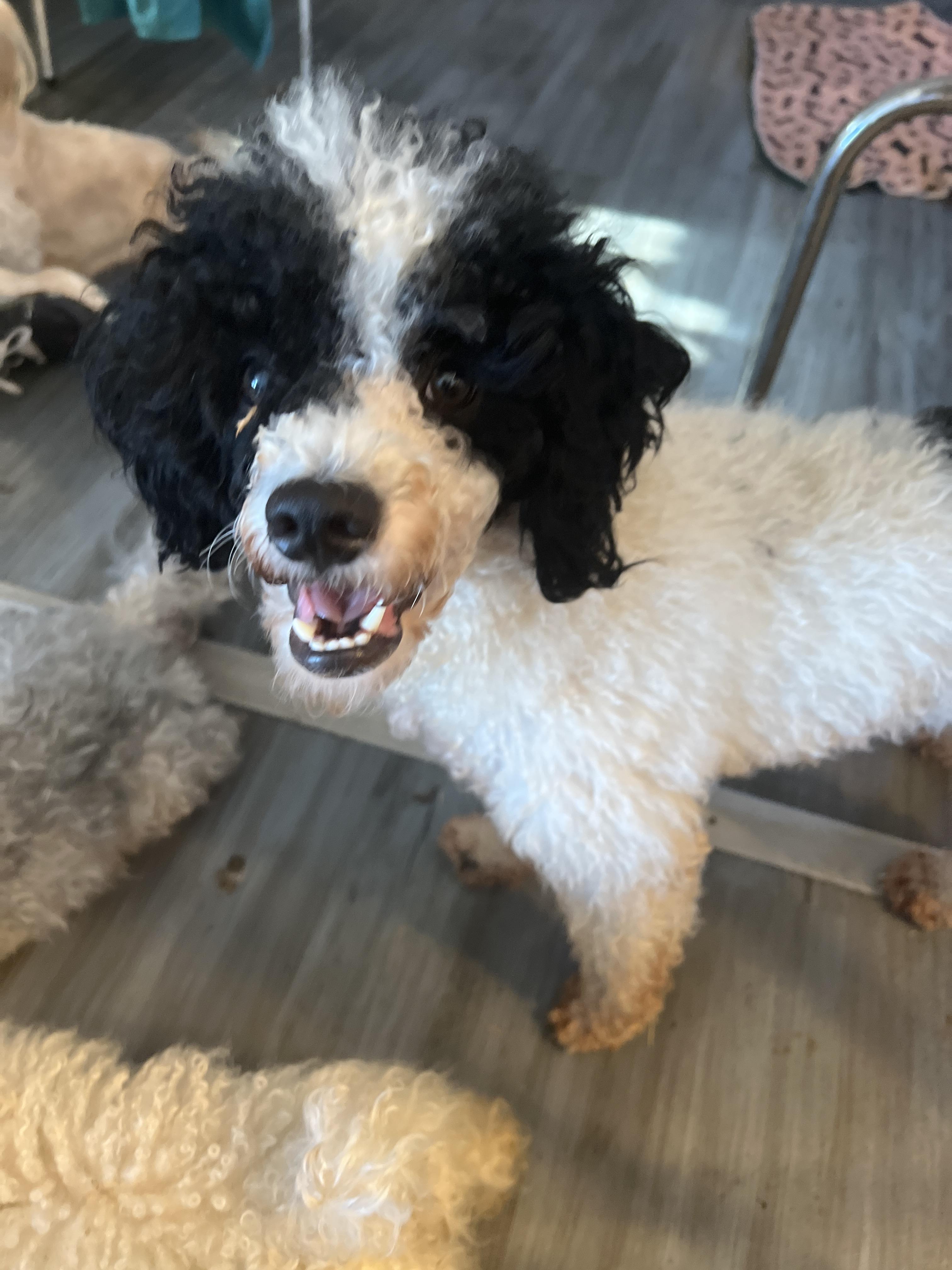 Sassy is spunkie yet loving poodle she's a lot of fun to through ball to but also loves her curled.