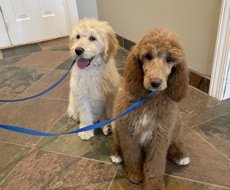 Our Poodle puppies are standard size. Goldendoodle puppies are standard size. Sizes will vary depending on the parent dogs.